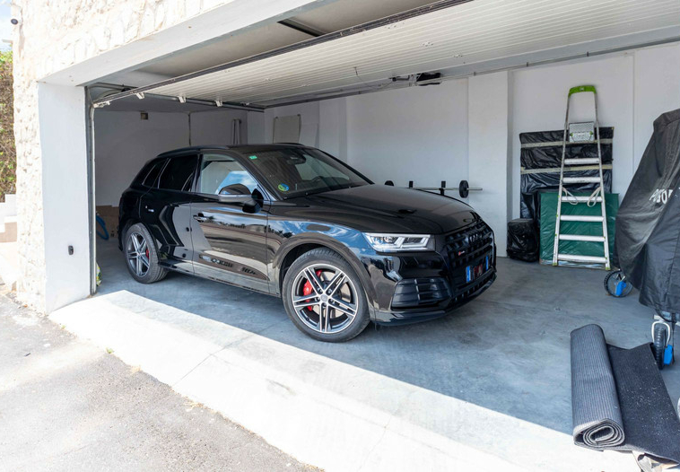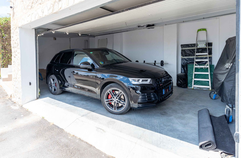 Amplio garaje privado para 2 coches y trastero. Además, la entrada cerrada ofrece espacio para al menos 2 coches más.