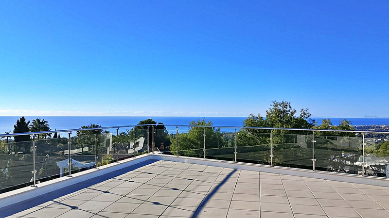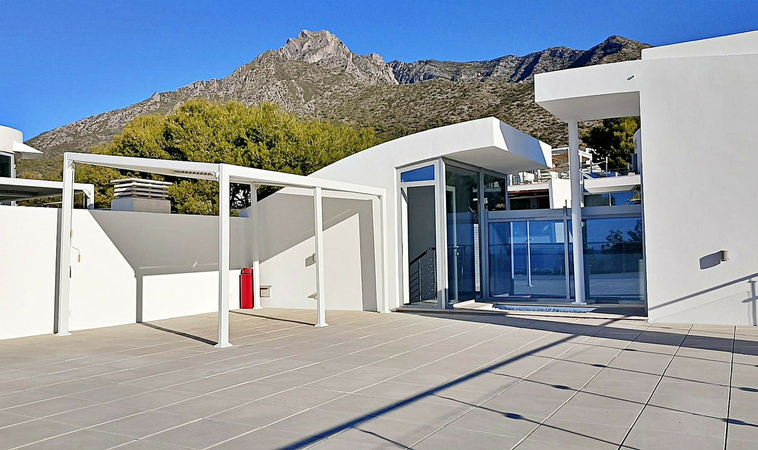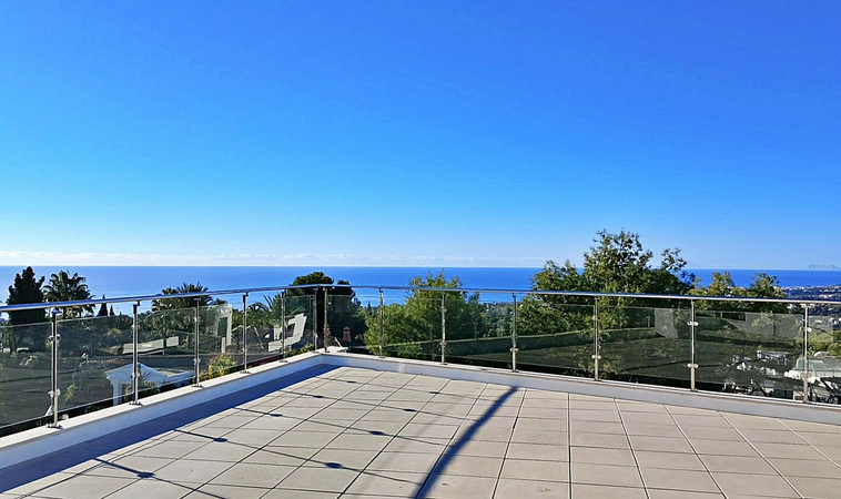 La planta ático revela una espectacular terraza con vistas panorámicas a la montaña de La Concha, al mar Mediterráneo y al entorno natural, perfecta para relajarse o disfrutar de reuniones al aire libre.