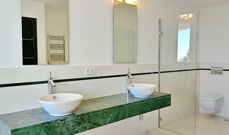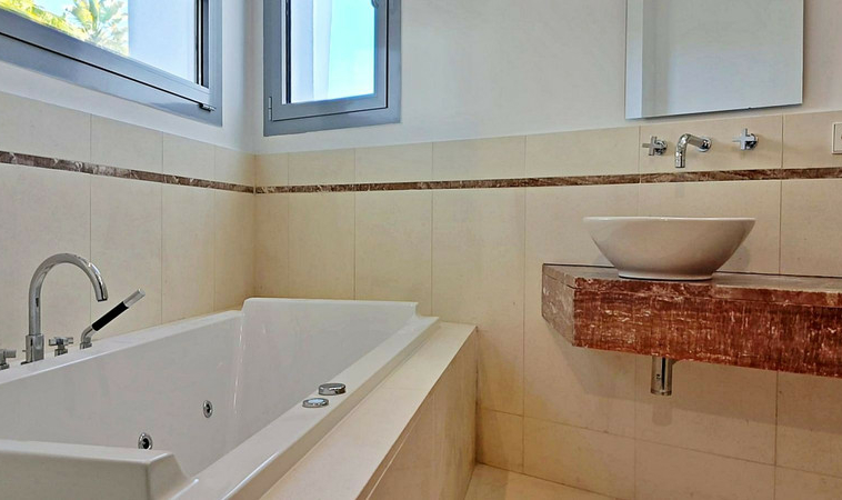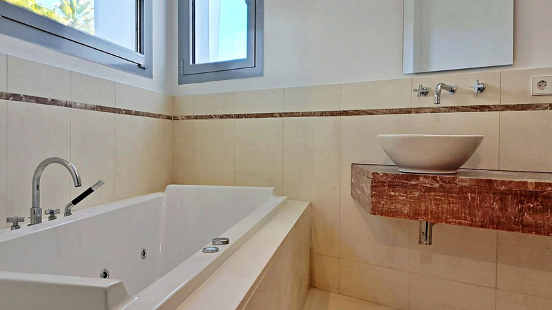 En la primera planta, la suite principal presume de impresionantes vistas al mar y al Peñón de Gibraltar, complementadas por un lujoso baño con jacuzzi, ducha y doble lavabo. Dos dormitorios adicionales, cada uno con su propio baño en suite, completan este nivel.