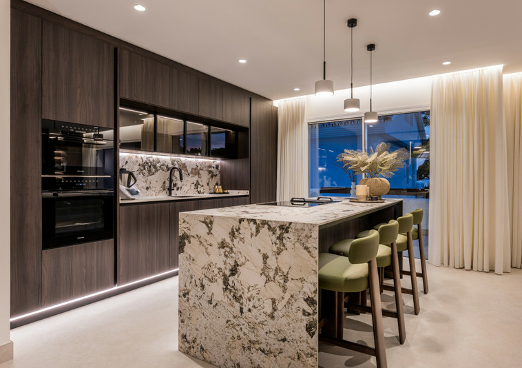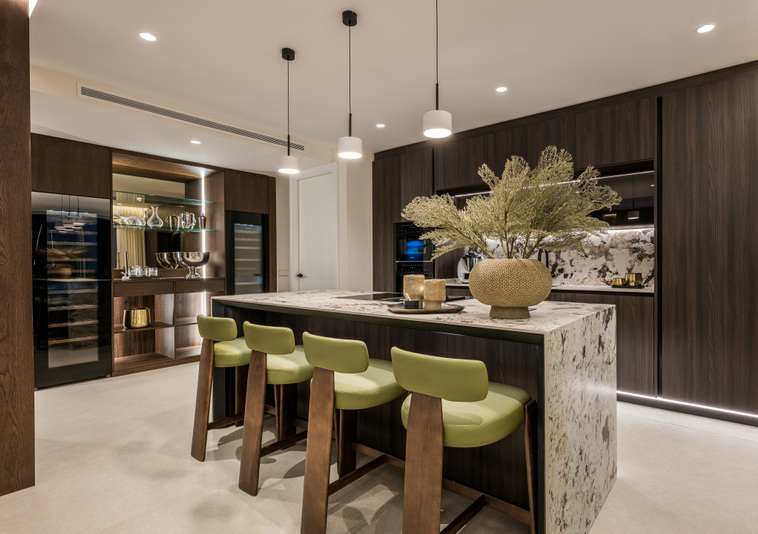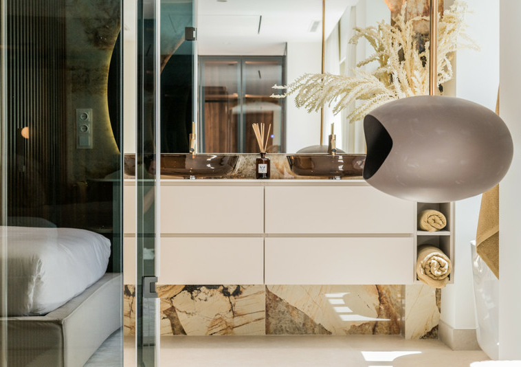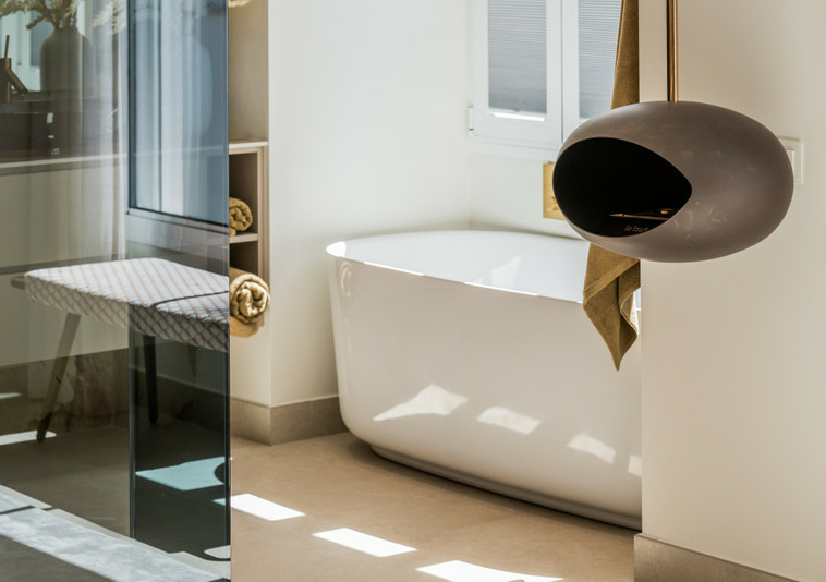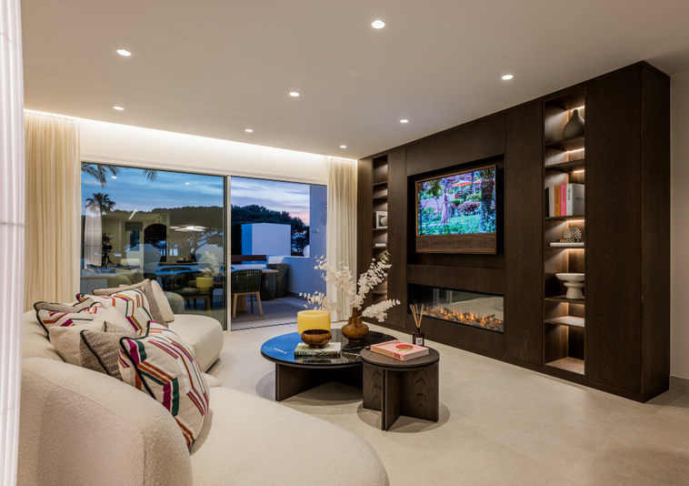 Cada detalle del apartamento ha sido cuidadosamente diseñado, desde el sistema de sonido Bang & Olufsen de última generación y la chimenea eléctrica del salón, hasta los armarios hechos a medida y la elegante bañera exenta.