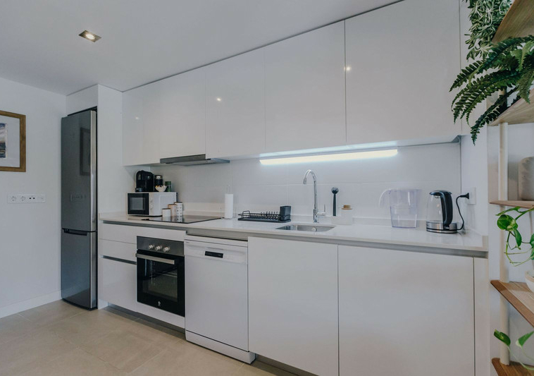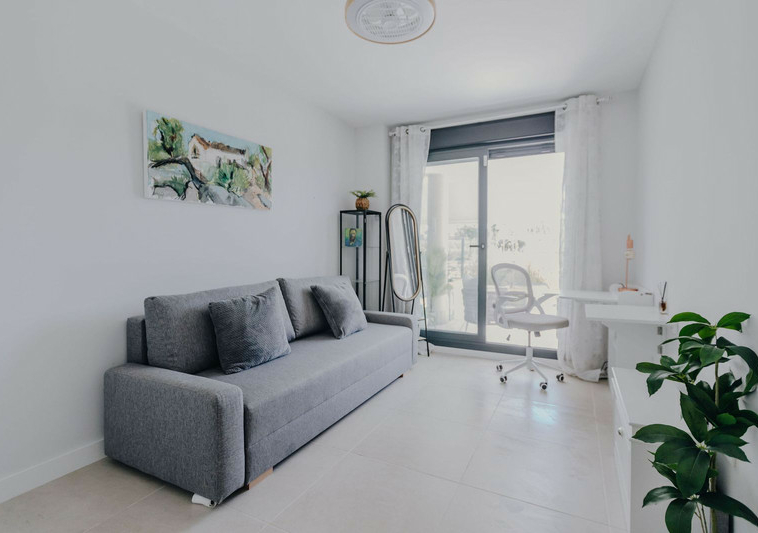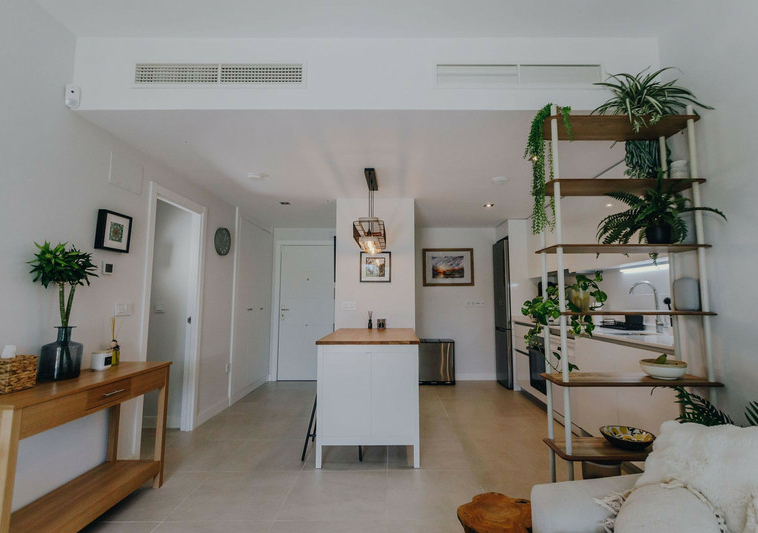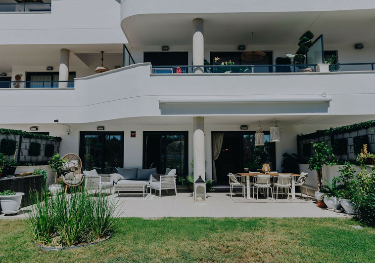 Con orientación sur, la vivienda disfruta de abundante luz natural durante todo el día y conecta a la perfección los espacios interiores y exteriores. La amplia cocina de concepto abierto se integra con el salón y da acceso a una gran terraza privada y jardín, ideales para comer al aire libre, recibir invitados o simplemente relajarse al sol. El apartamento se vende totalmente amueblado y listo para entrar a vivir, una solución llave en mano en una ubicación privilegiada.