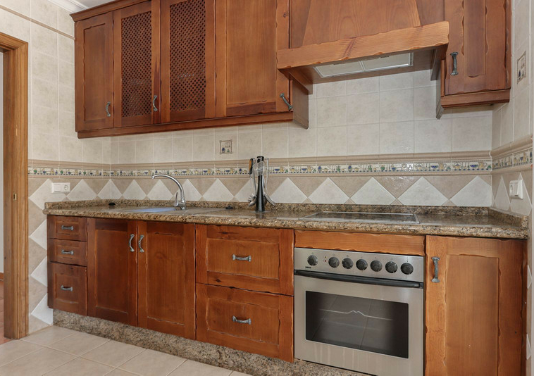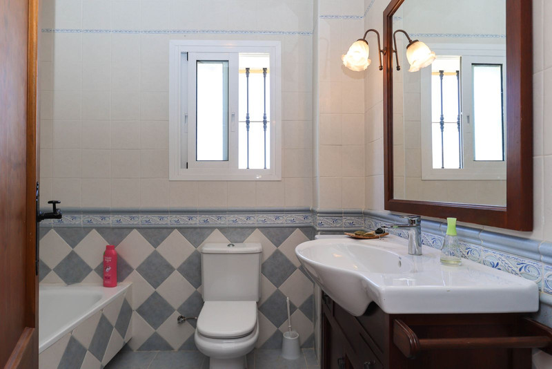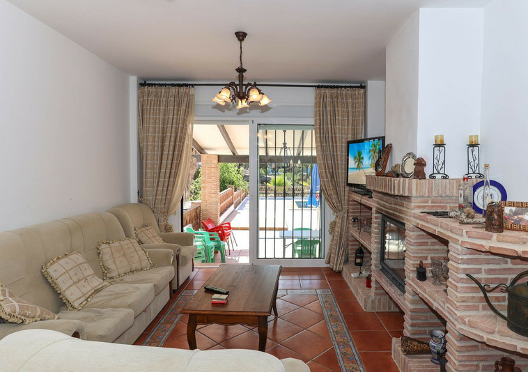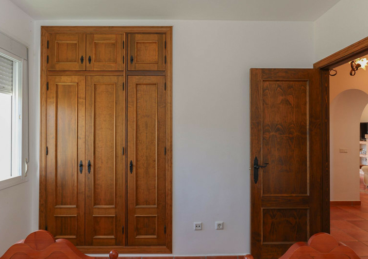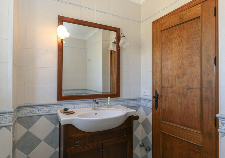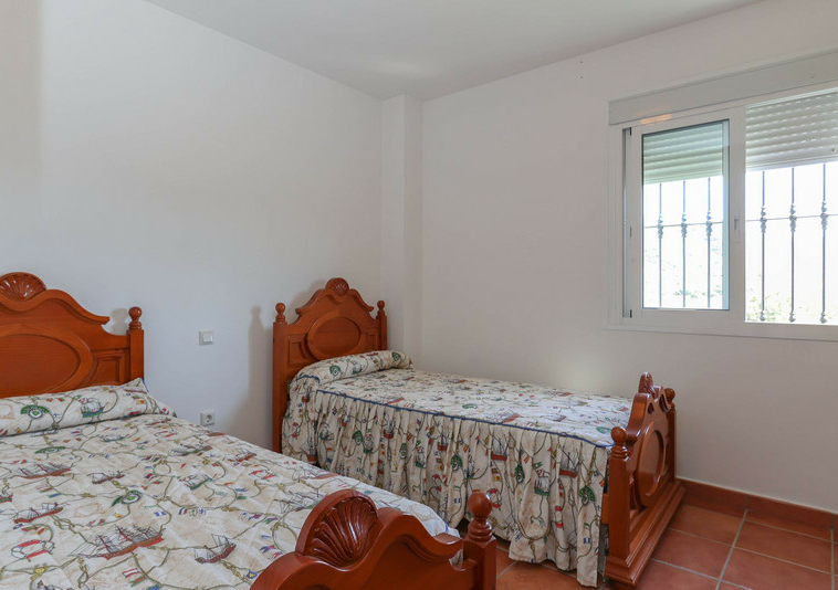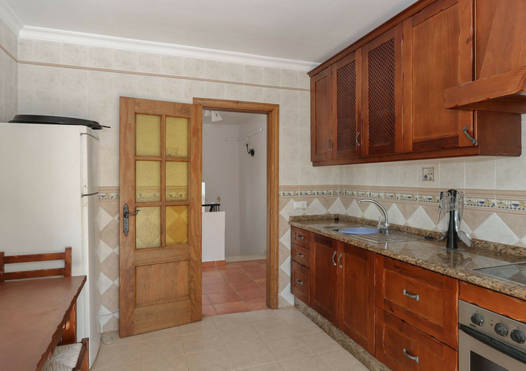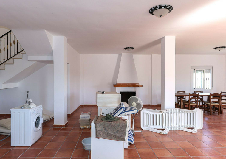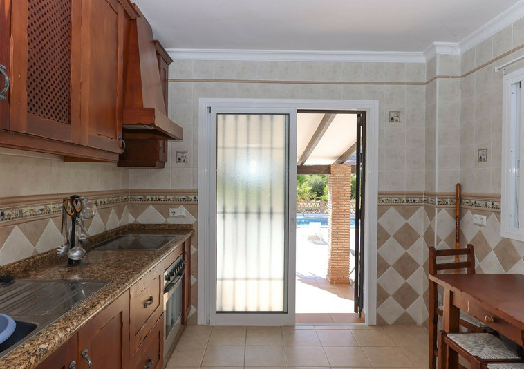 La casa se distribuye en dos plantas. En la planta baja se encuentra la casa principal, una propiedad de tres dormitorios y dos baños. El salón y la cocina tienen acceso a la terraza con sombra y vistas a la piscina.