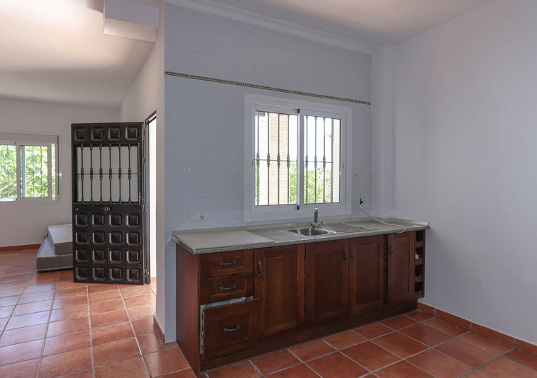 En la planta baja hay un espacio de tamaño similar que podría convertirse en una casita independiente para alquilar o para invitados. Ya cuenta con un baño y una cocina instalados. Esta zona tiene su propio acceso privado, por lo que podría utilizarse para diversas actividades.