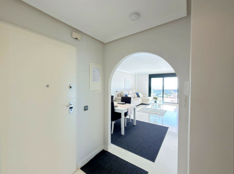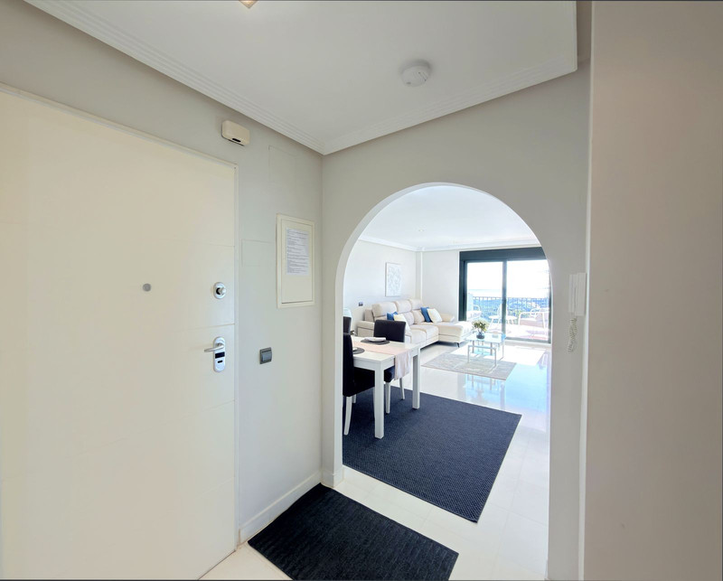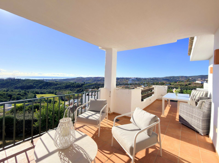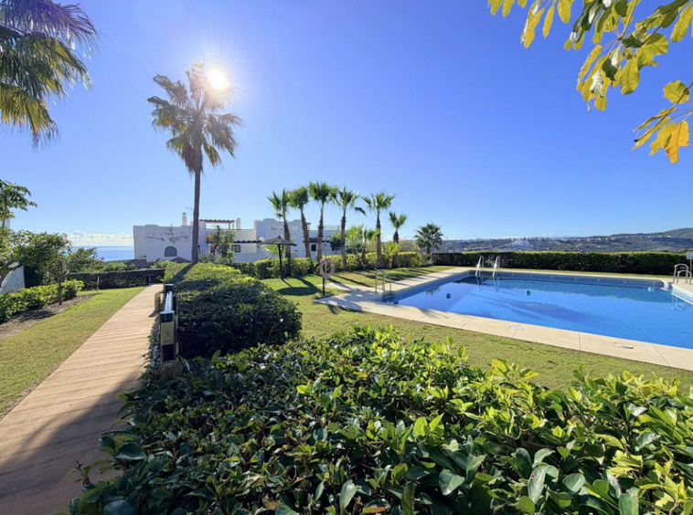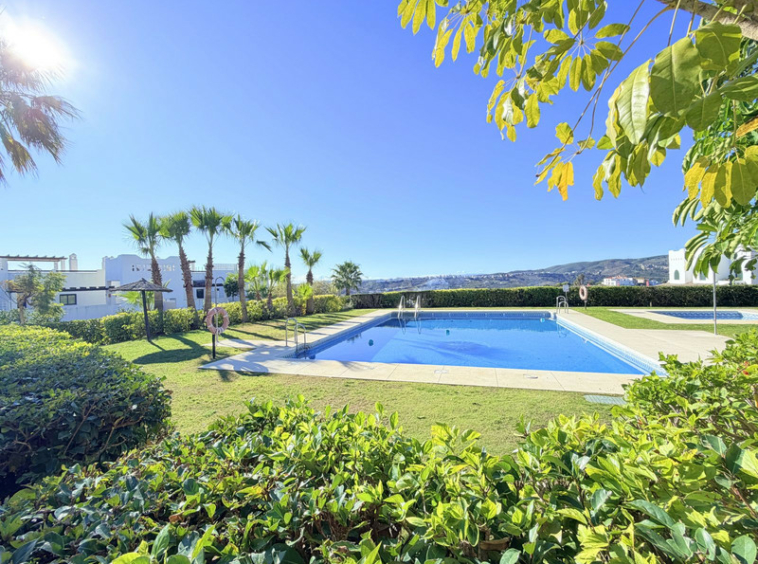Espectacular apartamento con vistas al golf y al mar en Casares Costa. Ubicado en una de las zonas con mayor proyección de la Costa del Sol, combina a la perfección tranquilidad, exclusividad y cercanía a los principales destinos de la zona. La vivienda se sitúa entre el prestigioso campo de golf Finca Cortesín y el de Doña Julia, rodeada de nuevas promociones de lujo y con la próxima apertura de un hotel de la reconocida cadena Conrad, lo que refuerza el atractivo y el valor del entorno. Se encuentra a tan solo 25 minutos de Marbella y a 15 minutos en coche de Sotogrande, enclaves destacados por su oferta gastronómica, comercial y de ocio, así como por su prestigio internacional. A solo cinco minutos en coche, podrá disfrutar de magníficas playas de arena fina y de un amplio paseo marítimo con una excelente variedad de restaurantes, chiringuitos y zonas de ocio, en un entorno residencial tranquilo, pero perfectamente comunicado y próximo a todos los servicios necesarios para el día a día. La vivienda, situada en primera planta y con orientación sur, disfruta de agradables vistas abiertas al golf y al mar, con luz natural que inunda cada estancia, aportando sensación de amplitud y bienestar. El apartamento se presenta en perfecto estado, con espacios generosos, cuidada presentación y excelentes calidades. El salón, amplio y luminoso, se abre a una magnífica terraza con dos ambientes diferenciados: una acogedora zona chill out y un espacio ideal como comedor exterior, perfecto para disfrutar durante prácticamente todo el año gracias al privilegiado microclima de la zona. Dispone de dos cómodos dormitorios y dos baños, uno de ellos en suite en el dormitorio principal, garantizando confort y privacidad. La propiedad se encuentra dentro de una urbanización cerrada, integrada en una macro comunidad con vigilancia 24 horas, muy bien mantenida, con zonas ajardinadas y piscinas para adultos y niños. Incluye plaza de aparcamiento y trastero. Una oportunidad nueva en el mercado, ideal como vivienda habitual, segunda residencia o inversión de calidad. Contáctenos y descubra personalmente todo lo que este hogar tiene para ofrecer.