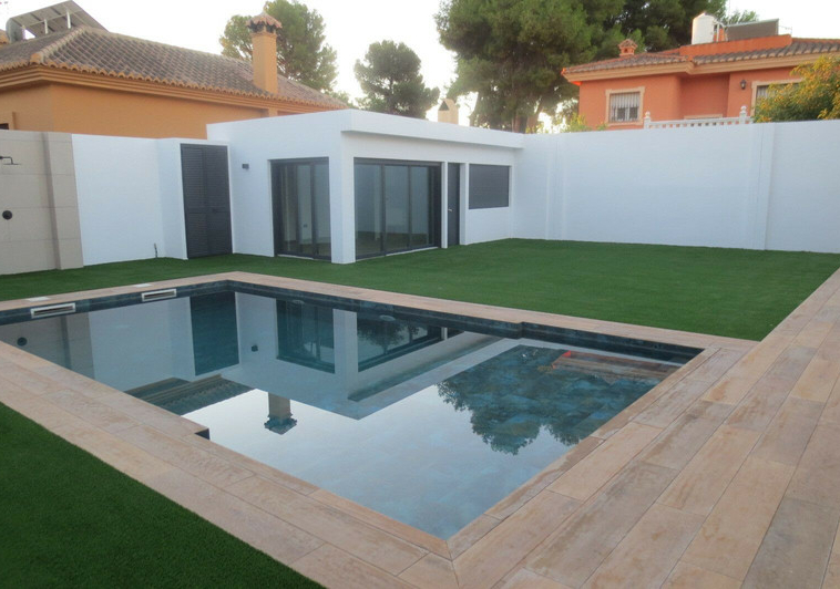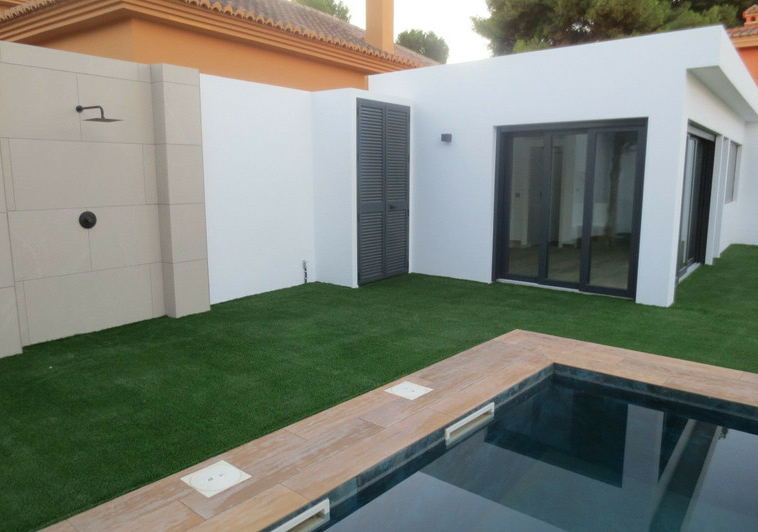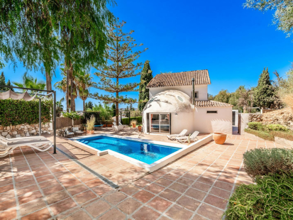 Espectacular Chalet/villa TOTALMENTE REFORMADA con las mejores calidades. Situada en una parcela de 506 m2 en las que conviven un gran jardín, una piscina privada y una superficie construida de 143m2. Esta impresionante villa se encuentra en la Urbanización El Coto, en Mijas Costa. Es conocida por su tranquilidad y belleza natural. Está convenientemente ubicada cerca de Fuengirola ofreciendo fácil acceso a todas las comodidades como supermercados, farmacia, restaurantes y junto al prestigioso colegio San Francisco de Asís. Construida en una planta, la vivienda cuenta con amplias terrazas y un patio andaluz con fuente de tres caños, idóneo para veladas íntimas. Cálido salón-comedor que forma un todo con la cocina totalmente equipada con muebles altos y bajos de gran capacidad y encimera de granito. Tres amplias habitaciones dobles con armarios empotrados y baño en suite con plato de ducha de resina y lavabo suspendido integrado en mueble. La villa se encuentra iluminada interiormente mediante led en todas las habitaciones. Las persianas están motorizadas además de la iluminación y aire acondicionado integrado con Alexa o Google home. Suelos radiantes en toda la vivienda. Zona de barbacoa con baño y estudio exterior. Planta fotovoltaica para producción de electricidad. Pérgola exterior para parking de vehículos con capacidad para 4 vehículos. Sin duda un oasis donde disfrutar. No pierda la oportunidad de visitarla!!