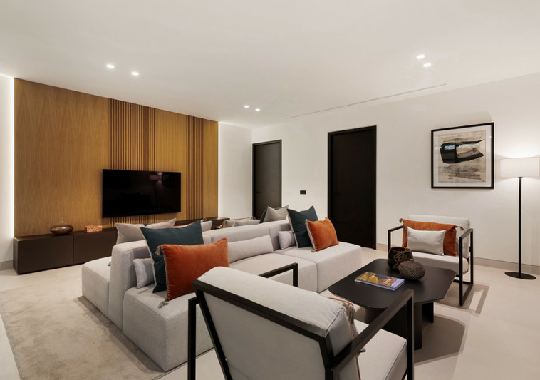 En el interior, la villa se distribuye en tres niveles diseñados con precisión y elegancia.
