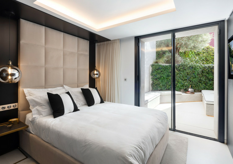 En el exterior, una terraza arquitectónicamente diseñada conduce a una piscina infinita que se funde visualmente con el jardín privado. Equipado con un sistema de riego automático, el jardín ofrece un espacio íntimo rodeado de vegetación cuidadosamente seleccionada. Ya sea para disfrutar del sol o celebrar una velada, este entorno exterior extiende el confort de la villa al aire libre.