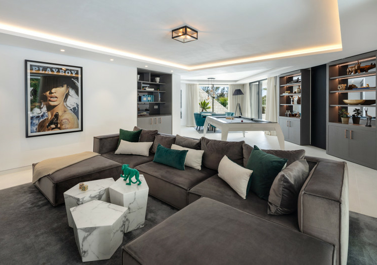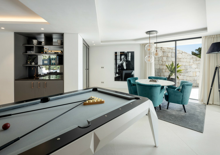 Al entrar, te reciben interiores diáfanos que fusionan estilo y funcionalidad. La zona principal se abre hacia amplias terrazas, creando una atmósfera ideal tanto para el entretenimiento como para la relajación. Entre sus características destacadas se encuentran una sala de cine privada y una bodega personalizada, ideales para disfrutar en compañía o en momentos de tranquilidad.