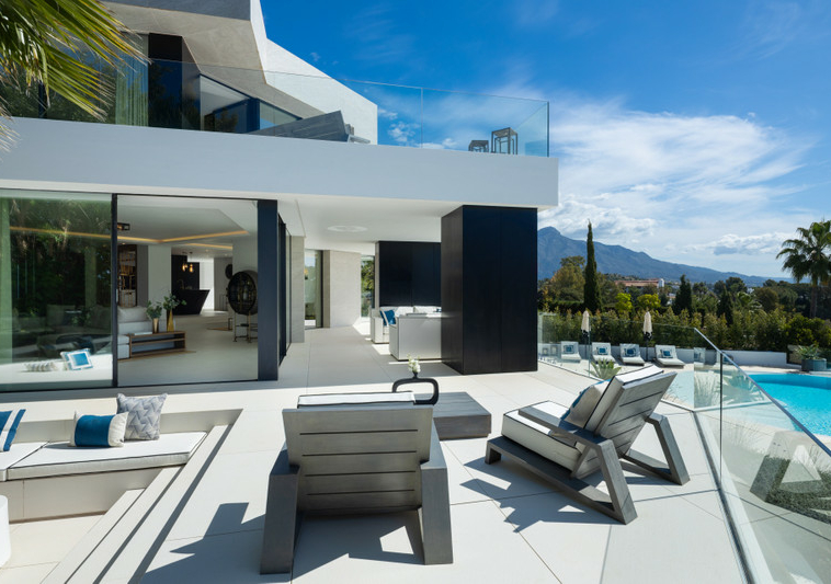 Esta vila es una impresionante residencia moderna diseñada por el prestigioso estudio Ames Architects, representa un estándar de vida sofisticada dentro de la exclusiva comunidad cerrada de El Herrojo Alto, en Benahavís. Construida en 2021 y distribuida en tres plantas cuidadosamente planificadas, la propiedad ofrece una superficie construida de 555m², y 530 m² de terrazas abiertas que equilibran perfectamente la elegancia interior con la serenidad exterior.