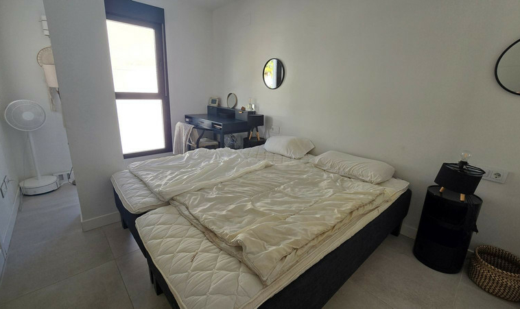 Ambos dormitorios son espaciosos y han sido diseñados con atención al confort y la funcionalidad. El dormitorio principal cuenta con acceso directo a la terraza y un baño en suite, mientras que el segundo dormitorio se sitúa en una zona más independiente, proporcionando privacidad y versatilidad, ya sea para invitados, familiares o como despacho. El estado general del apartamento es excelente, y el hecho de que se venda completamente amueblado permite instalarse sin complicaciones.