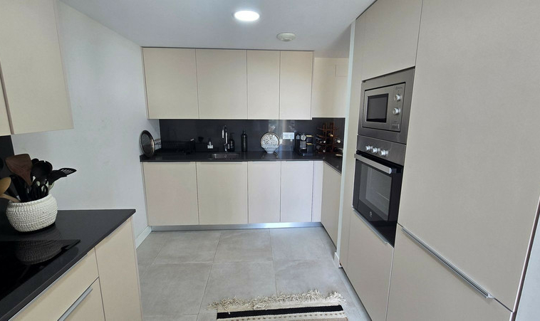 El salón y el comedor forman el corazón social de la vivienda, donde las líneas limpias, los tonos neutros y los materiales contemporáneos crean un ambiente acogedor y sofisticado. La cocina abierta, equipada con materiales de alta calidad y soluciones modernas, se integra perfectamente con el estilo arquitectónico del conjunto residencial. Los amplios ventanales permiten la entrada de abundante luz natural, realzando la sensación de amplitud.