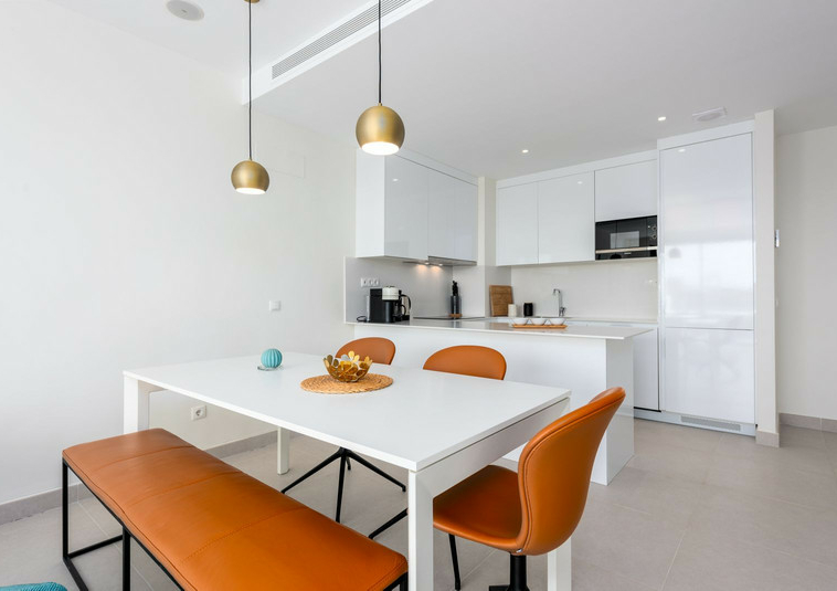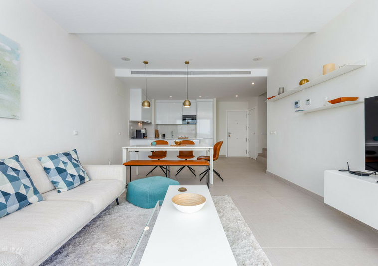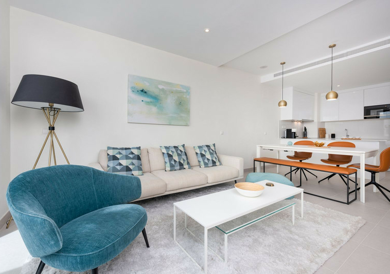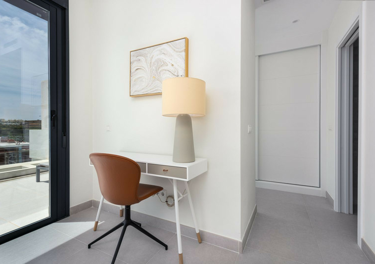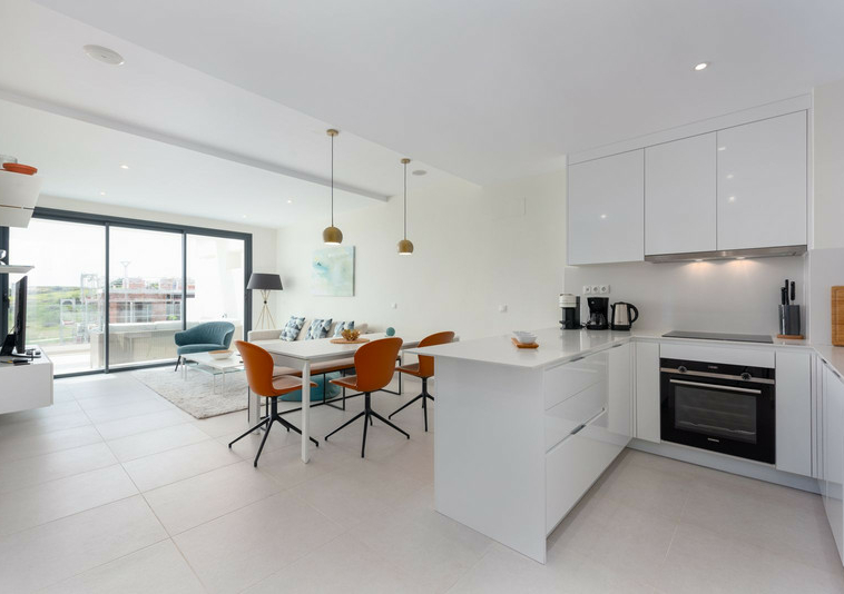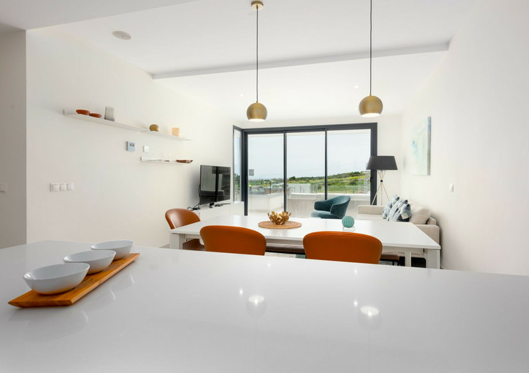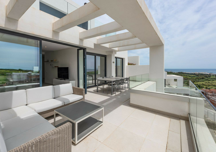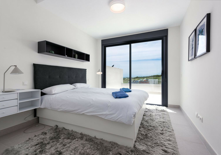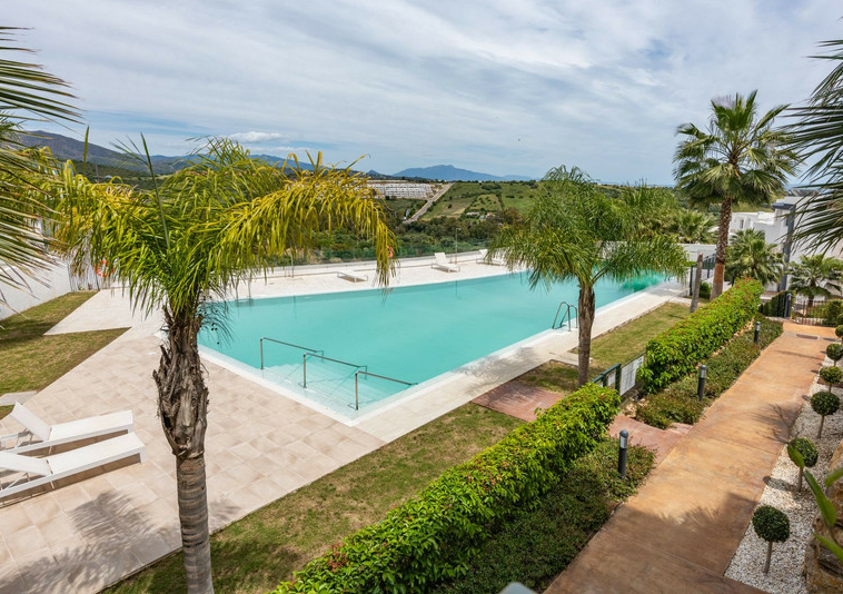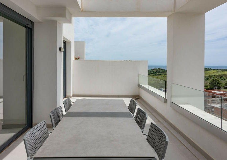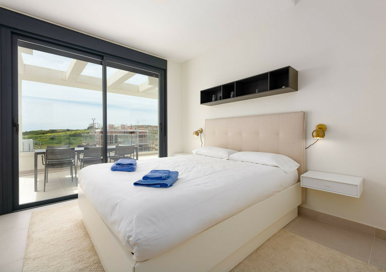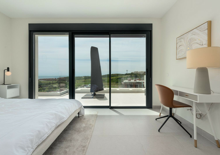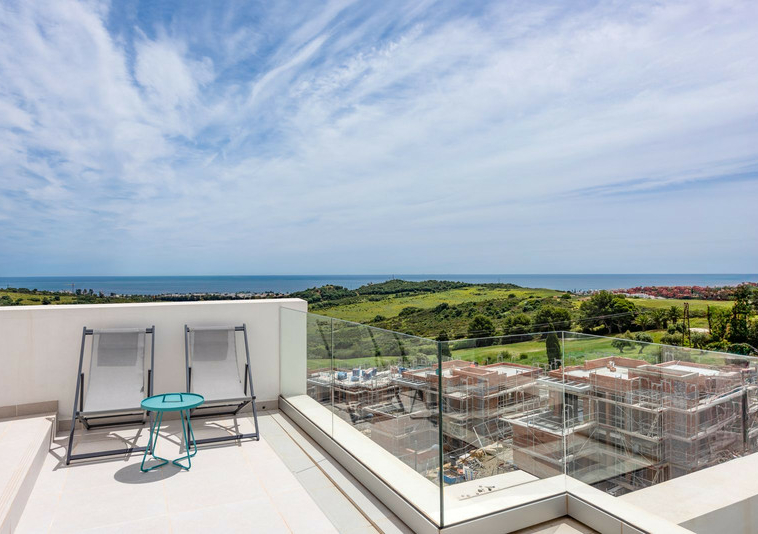Con 3 amplios dormitorios y 2 baños modernos, cuenta con una cocina americana y dos grandes terrazas, ideal para disfrutar de las impresionantes vistas del campo de golf, el mar y las montañas. El dormitorio principal incluye baño en-suite y acceso privado a la terraza.