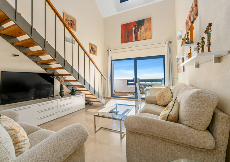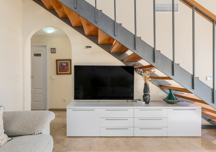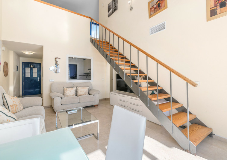 Este magnífico ático dúplex cuenta con tres dormitorios y tres baños.
