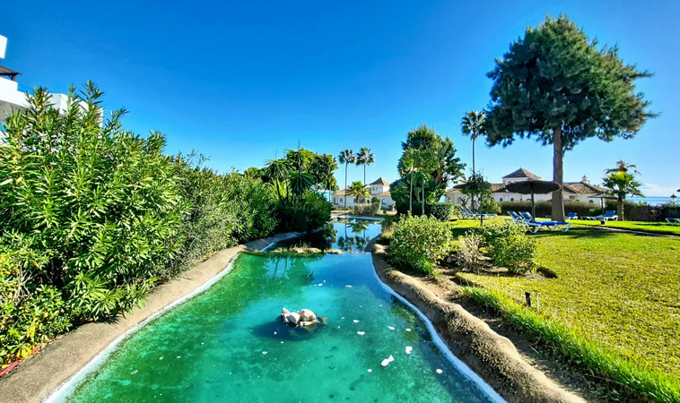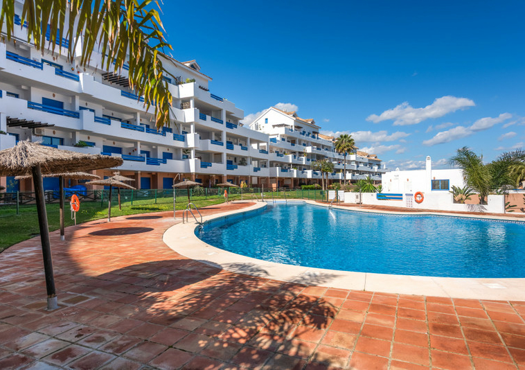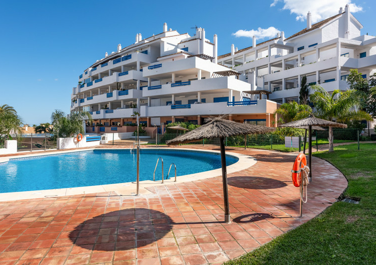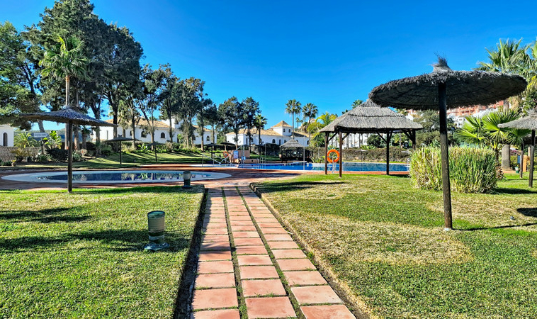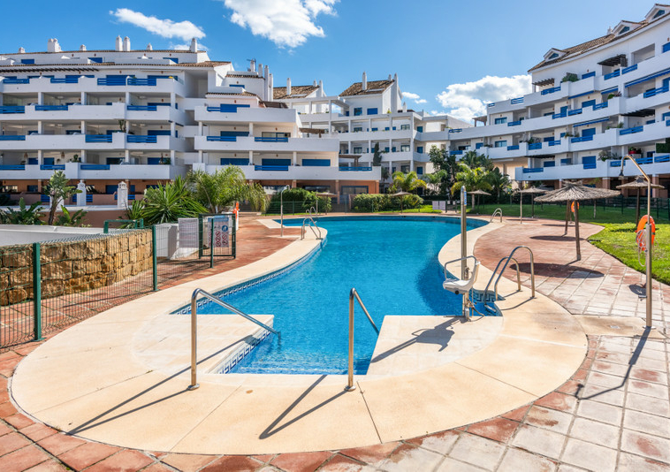 El complejo residencial dispone de cuatro piscinas y dos pistas de pádel. Además, cuenta con seguridad 24 horas y está completamente cerrado. El acceso se realiza a través de una entrada vigilada con guardias de seguridad y barrera. La propiedad incluye también dos plazas de garaje.