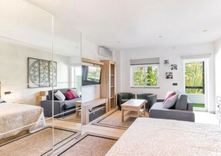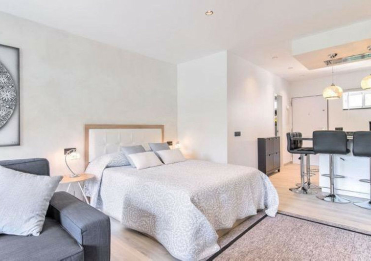 Estudio reformado en el corazón de la Milla de Oro. Cuenta con una cocina moderna totalmente equipada y un espacio abierto que combina salón y dormitorio con acceso a una terraza privada, ideal para relajarse. Dispone además de baño contemporáneo y aire acondicionado frío/calor. La urbanización ofrece jardines cuidados, piscina, pista de tenis y plaza de parking, todo pensado para tu comodidad y disfrute.