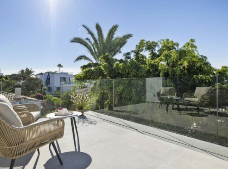Cuenta con una atractiva piscina privada y se encuentra a un corto paseo de la playa, a tan solo 5 minutos en coche del centro de Marbella y próxima a todo tipo de servicios.