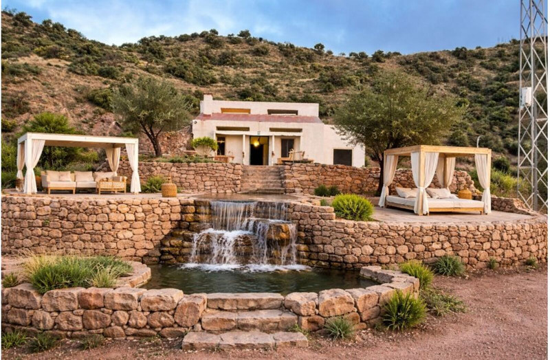 diseñada según los principios de la permacultura y la sostenibilidad, situada en un entorno natural privilegiado,