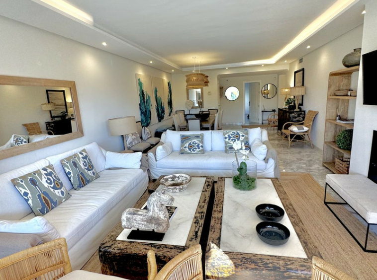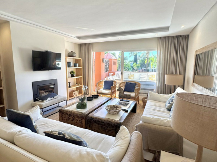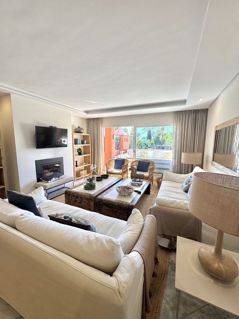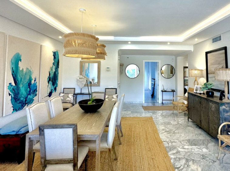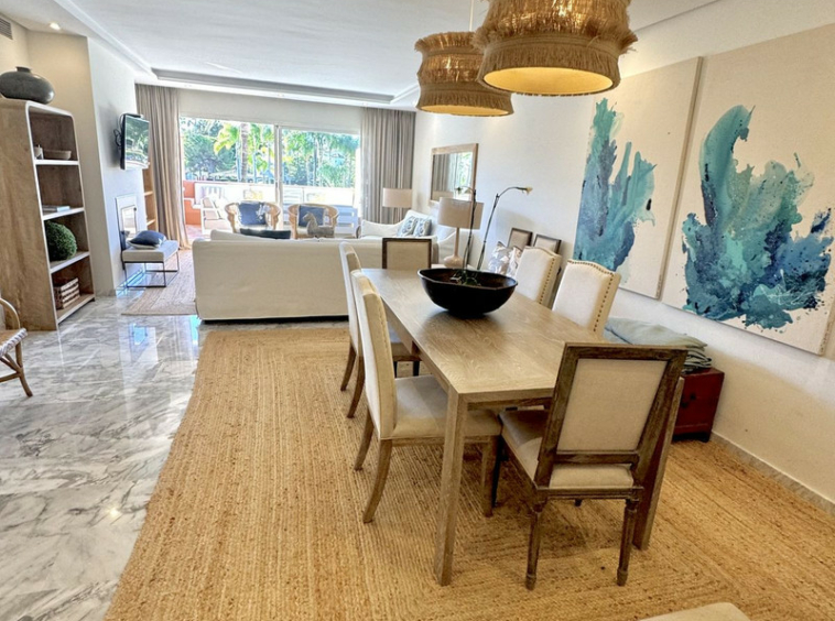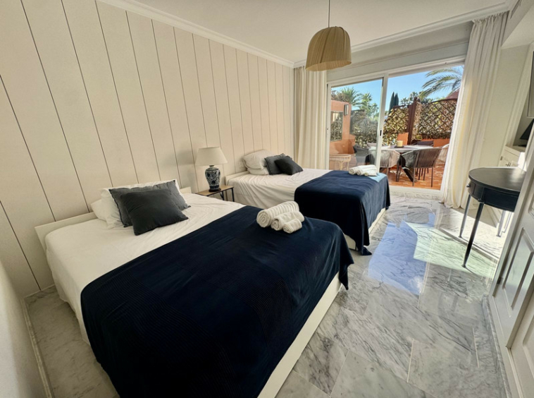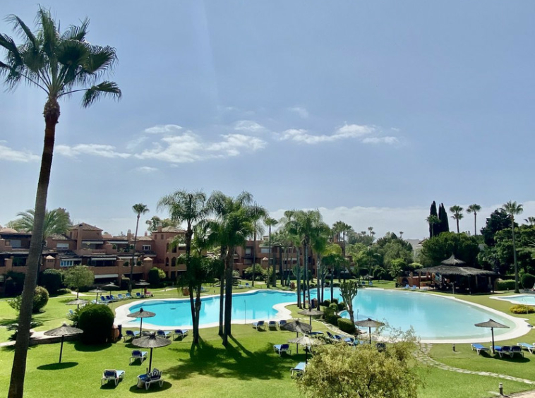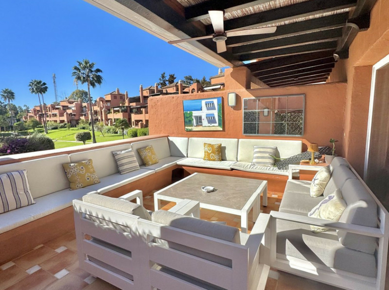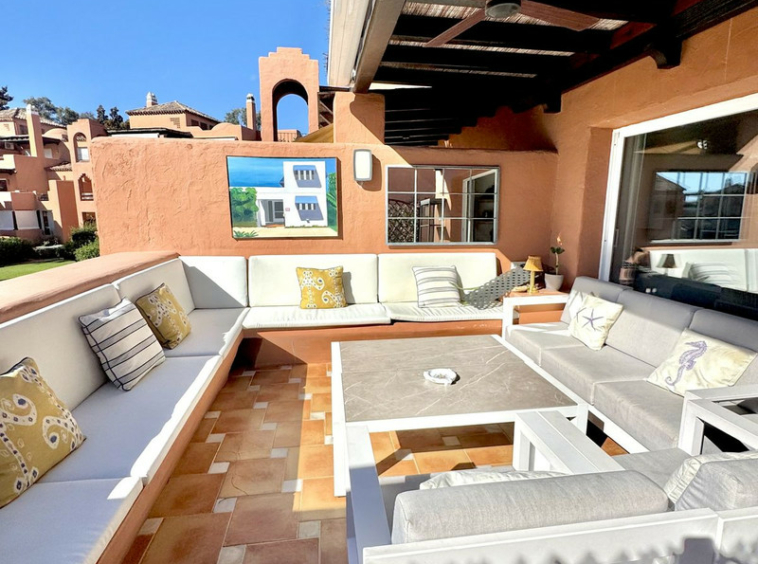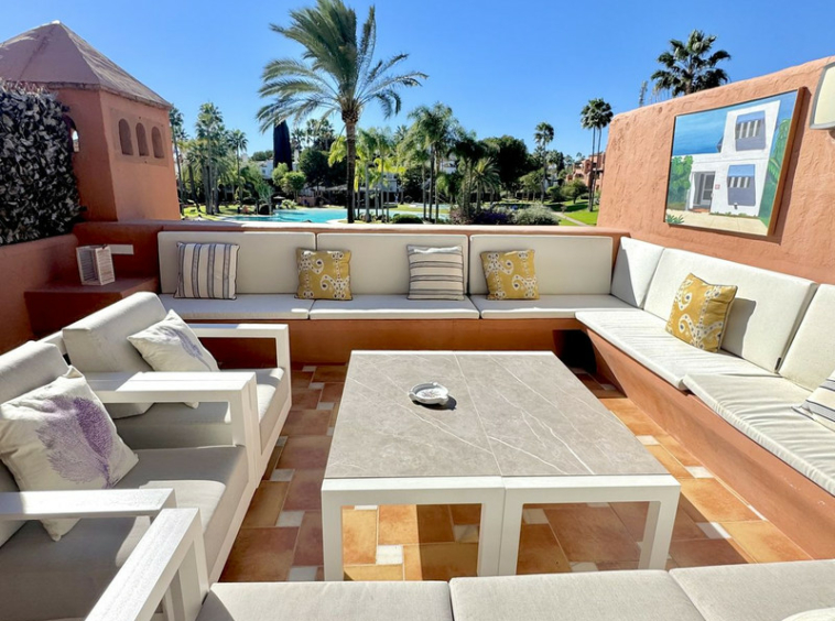 EXCLUSIVA -UNICO. PRECIOSO. REFORMADO E IMPECABLE. Amplio ático dúplex de 4 dormitorios, ubicado en Alhambra del Golf, una de las urbanizaciones más emblemáticas de Guadalmina Baja. Posee amplias estancias y dos terrazas en ambas plantas, que suman 70 metros. En la planta inferior se encuentra un gran salón comedor con acceso a la terraza semicubierta, con orientación sur y vistas a las zonas comunes de jardines, beach, piscinas y zona niños, de la urbanización. También dispone de cocina totalmente equipada, con zona de lavadero y dos dormitorios con ambos baños en suite, además de un aseo de invitados. En la planta superior se encuentra el dormitorio principal, con amplios techos abovedados y numerosos armarios, con su baño en suite y acceso a una gran terraza cubierta. En esta misma planta hay otro dormitorios con baño completo.