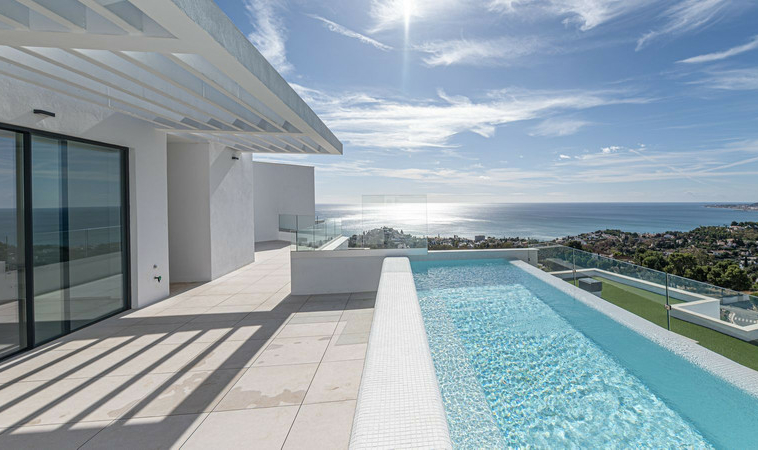 Descubre esta espectacular villa contemporánea con vistas panorámicas al mar Mediterráneo, la bahía de Fuengirola y las montañas. Ubicada en una de las zonas más codiciadas de Benalmádena, ofrece un estilo de vida único donde la elegancia, la privacidad y el confort se unen a la perfección.