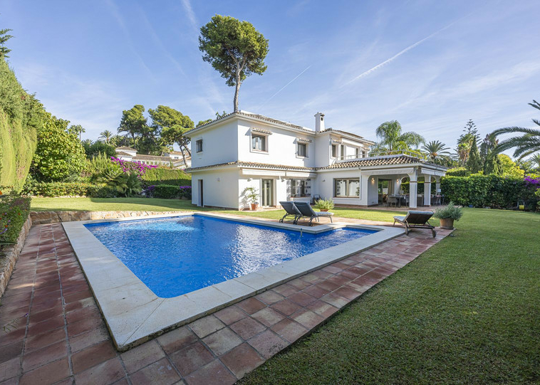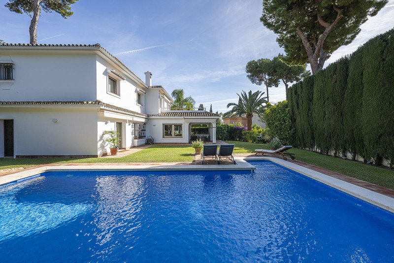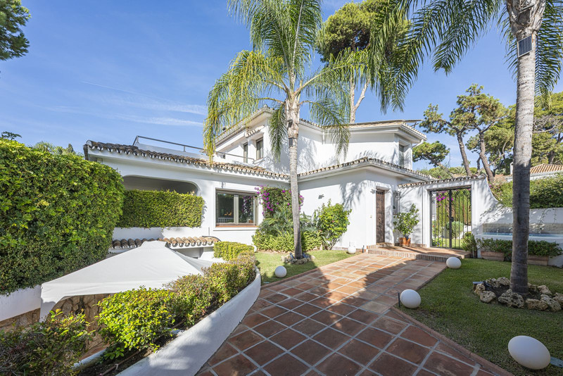 Villa unifamiliar de estilo mediterráneo a unos pasos del mar en la prestigiosa urbanización de Los Monteros, Marbella.