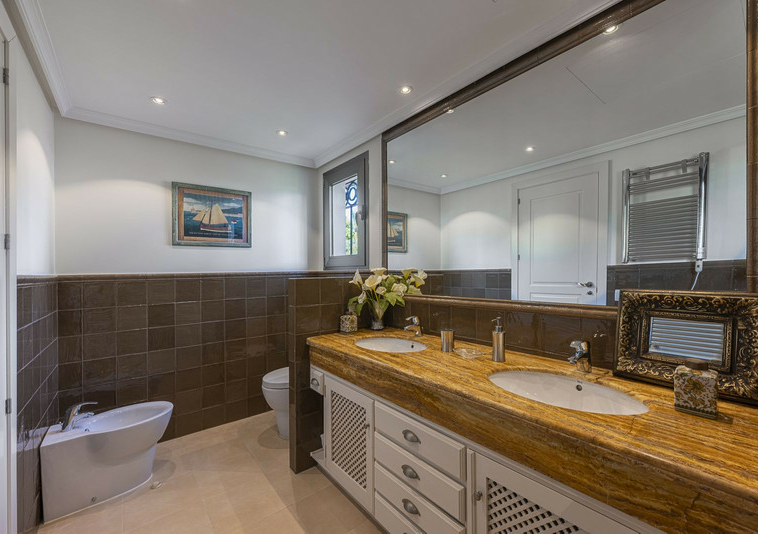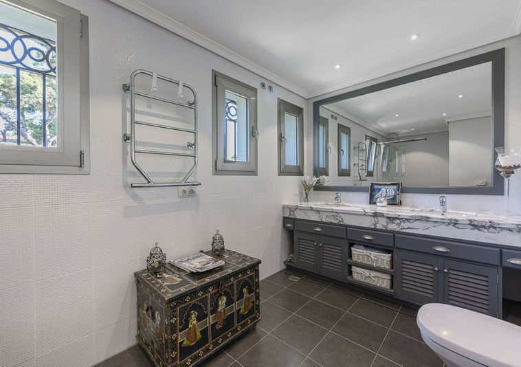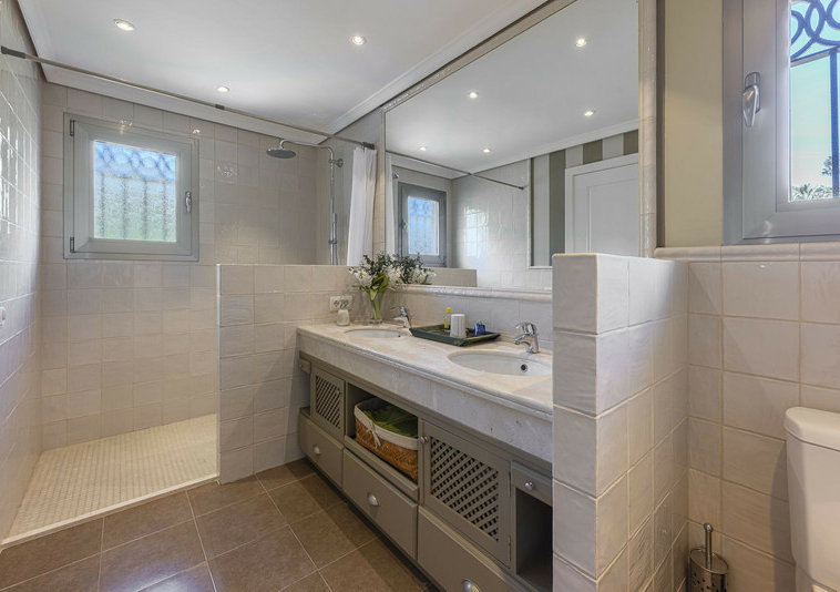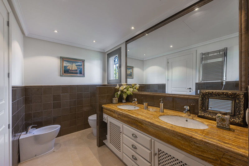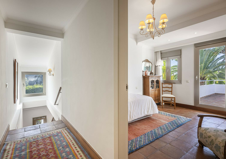 La villa tiene vistas al mar desde la primera planta, un jardín maduro meticulosamente cuidado con piscina de agua salada y contracorriente. Consta de 5 dormitorios, 5 cuartos de baño, dos de ellos ensuite y un aseo de invitados. Salón amplio con comedor, una cocina independiente y una distribución muy cómoda y práctica. Cuenta con un garaje para dos vehículos.