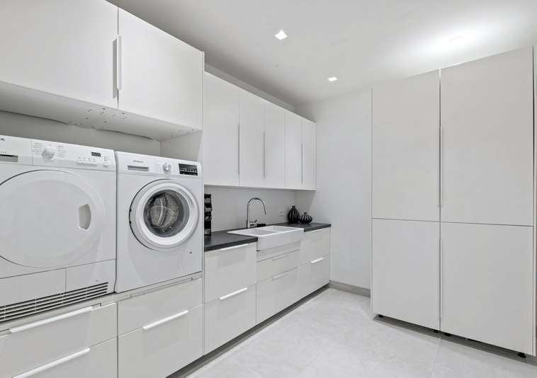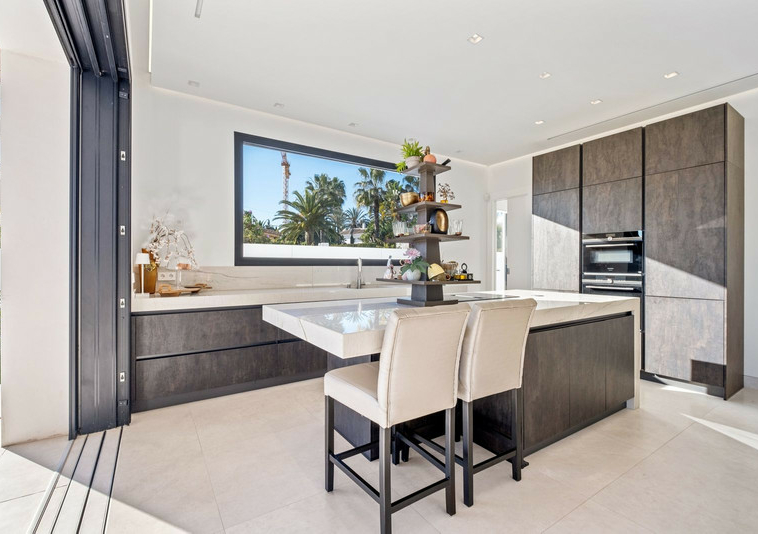 El corazón del hogar es su cocina de concepto abierto, equipada con electrodomésticos Siemens, una despensa oculta y un frigorífico Liebherr, todo perfectamente integrado para una experiencia culinaria impecable.