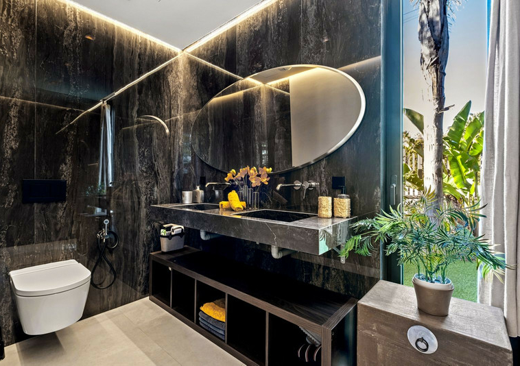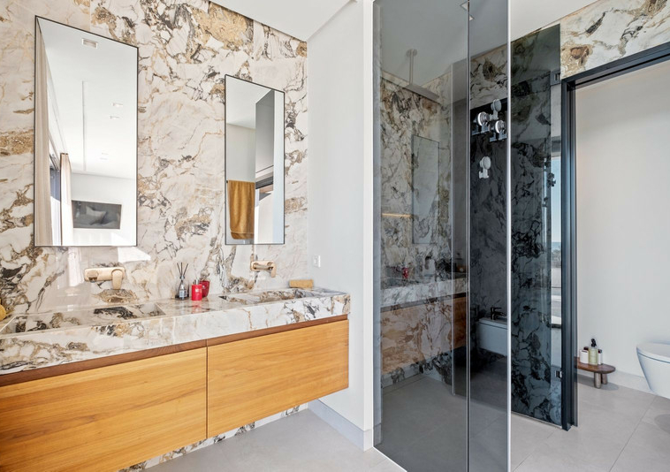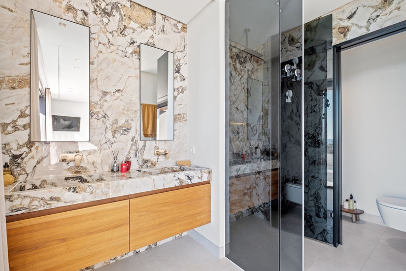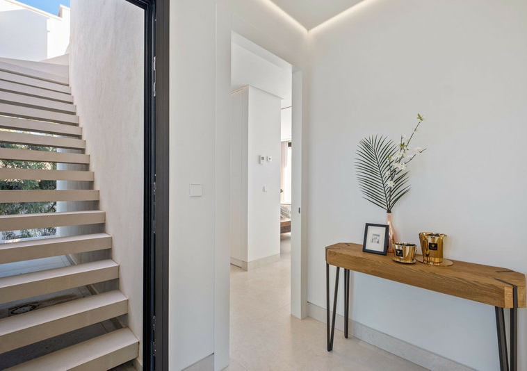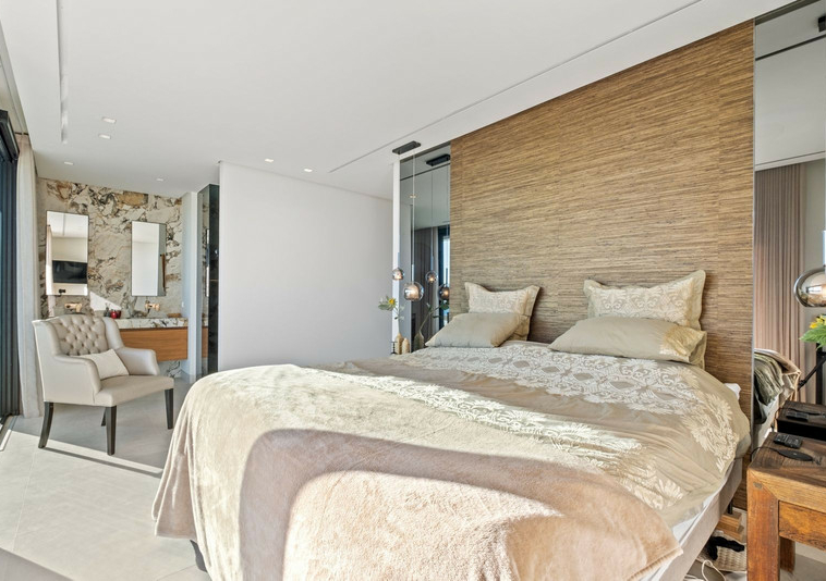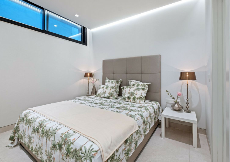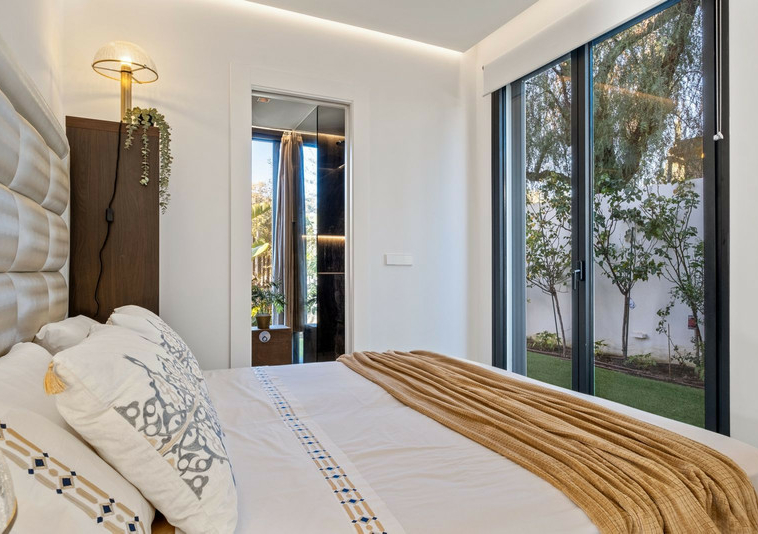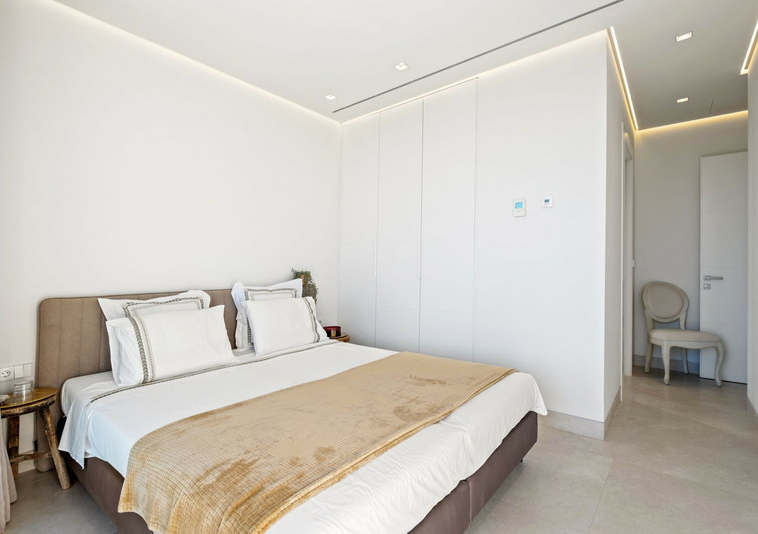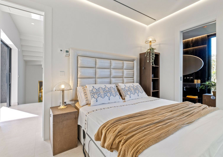 Con 4 amplias habitaciones y 5.5 baños, además de una sala de fitness y relax, esta residencia ha sido diseñada para maximizar el confort y la elegancia. El piso superior alberga la suite principal, con baño de concepto abierto y acceso directo a un impresionante solárium privado con jacuzzi, ideal para disfrutar de las puestas de sol mediterráneas.