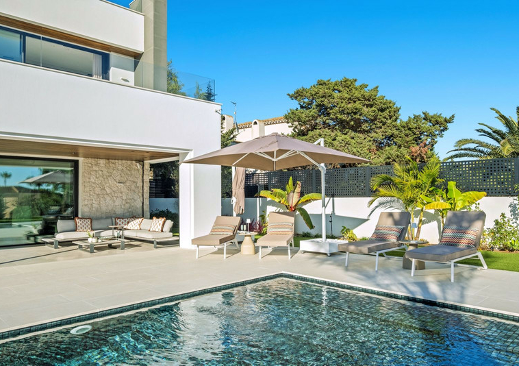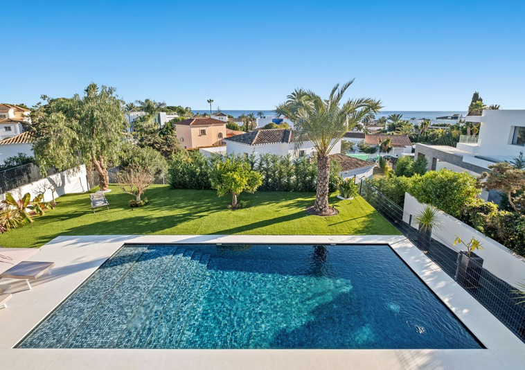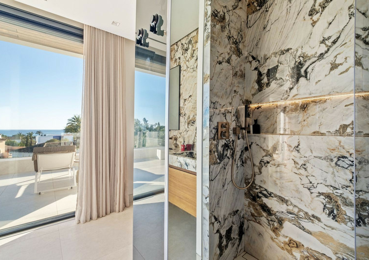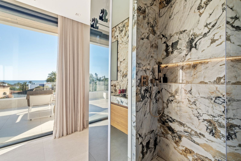 Ubicada en la prestigiosa zona de Marbesa, a solo unos pasos de la playa, esta villa redefine el concepto de lujo junto al mar. Esta propiedad excepcional ofrece una arquitectura contemporánea y acabados de primera calidad, con una amplia superficie habitable de 227m², una terraza cubierta de 44m² que se extiende perfectamente hacia el jardín, una terraza de 31m² en la primera planta con impresionantes vistas al mar y una azotea de 65m² equipada con un lujoso jacuzzi. Esto proporciona el espacio exterior perfecto para disfrutar durante todo el año. Una oportunidad inigualable para quienes buscan un hogar refinado y funcional que combine la elegancia moderna con la comodidad.