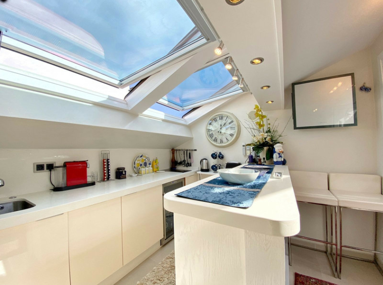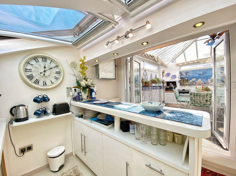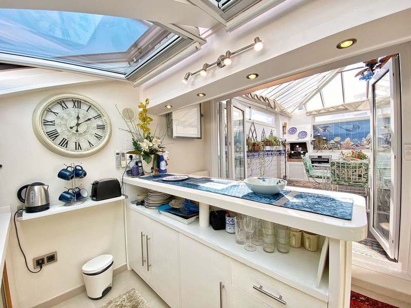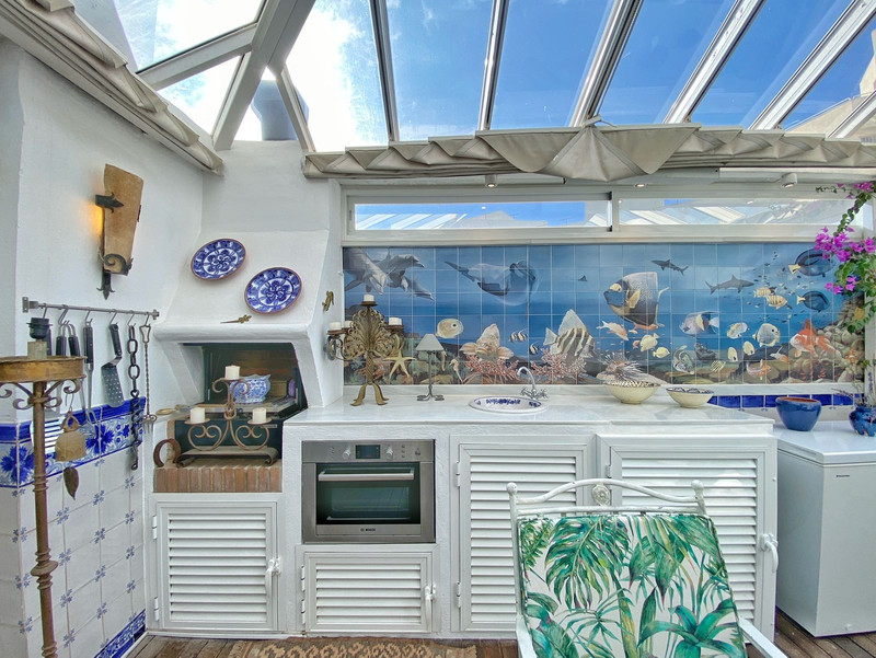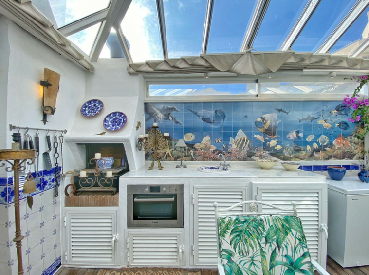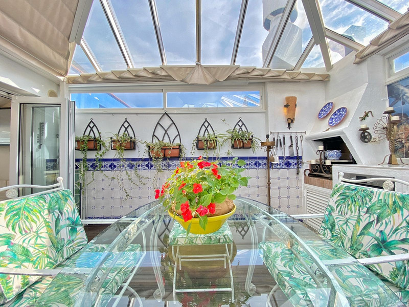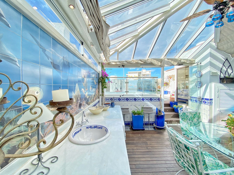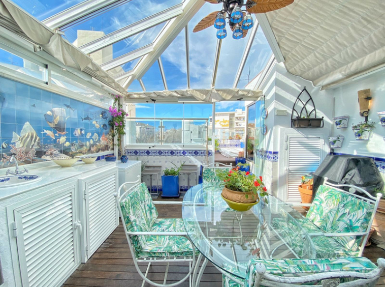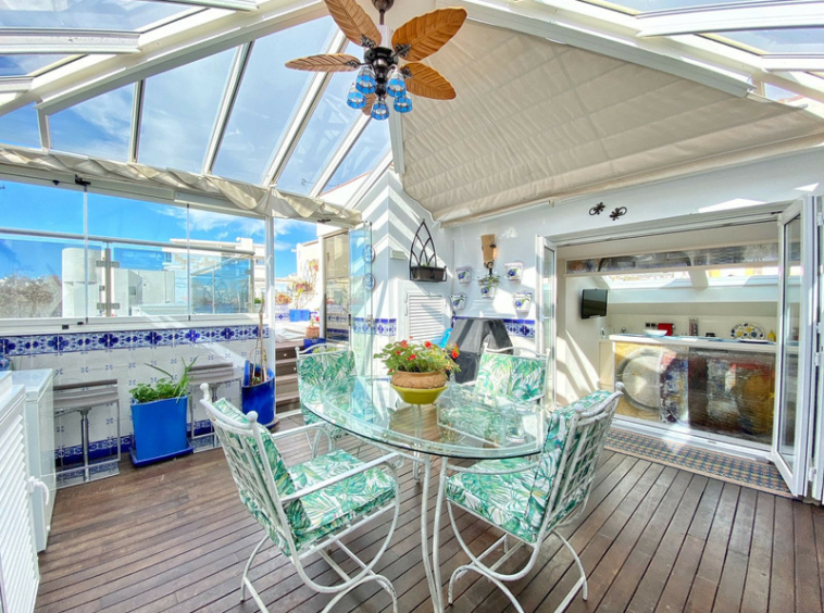 Una fantastica terraza que se encuentra cubierta por una cúpula con techo de cristal, permitiendo darle uso a la terraza durante todo el año.
