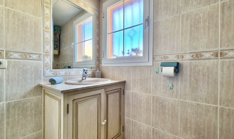 Se accede a través de un hall que conduce a un luminoso y espacioso salón-comedor, un ambiente ideal para el día a día. Desde aquí, unas puertas correderas se abren a una encantadora terraza orientada al sur, perfecta para comidas al aire libre, relajarse al sol o recibir invitados.