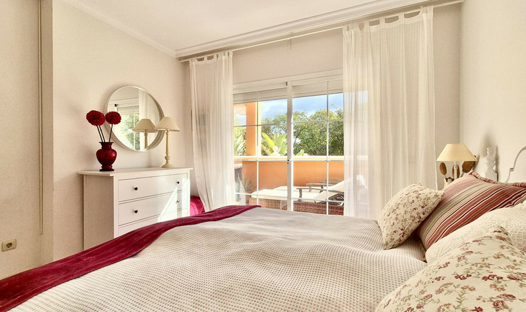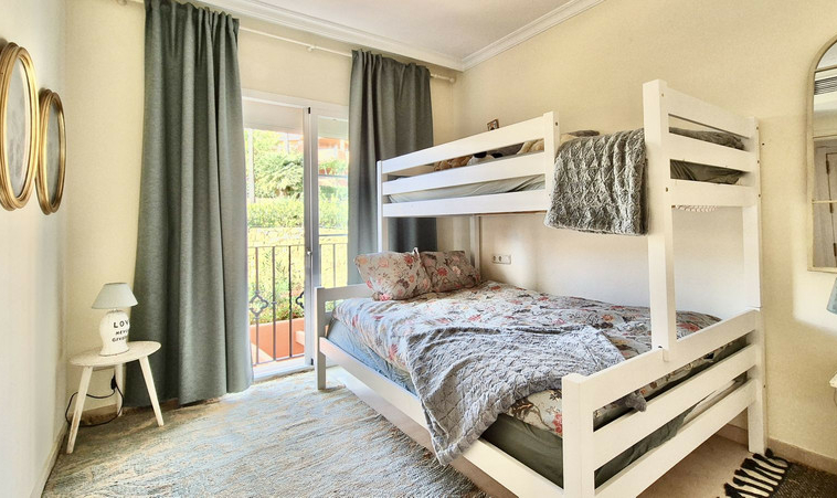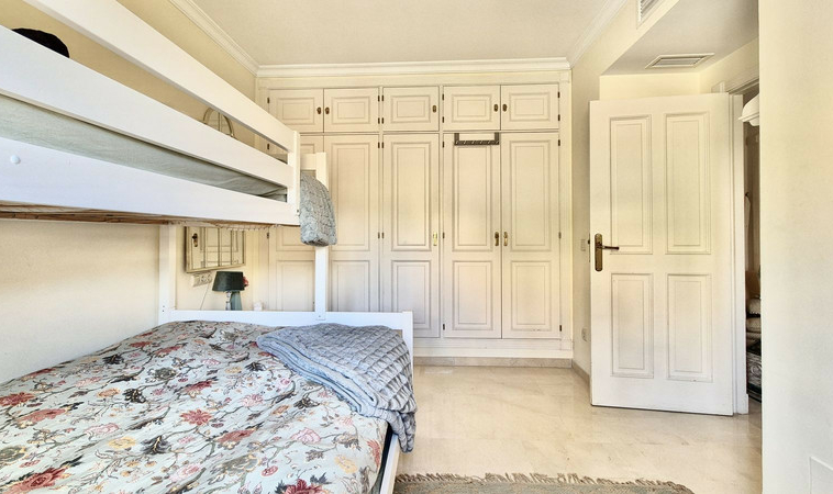 El dormitorio principal cuenta con baño en suite y acceso directo a la terraza, creando un refugio tranquilo con abundante luz natural. El segundo dormitorio es igualmente confortable y está atendido por un baño de invitados bien equipado.