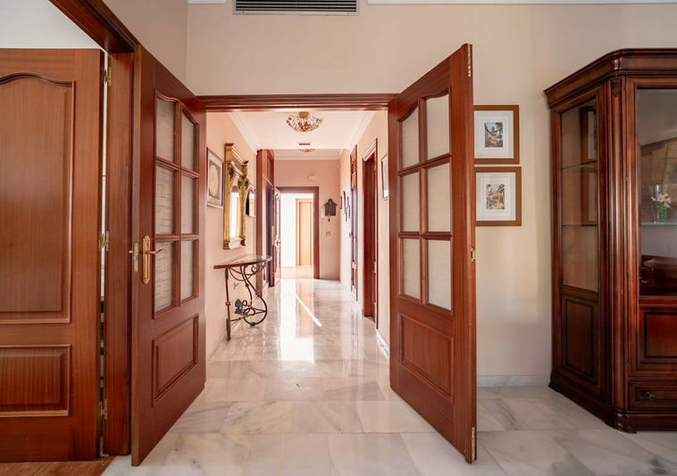 Un pasillo independiente conduce a los tres dormitorios en suite, ofreciendo comodidad y privacidad tanto para la familia como para los invitados.