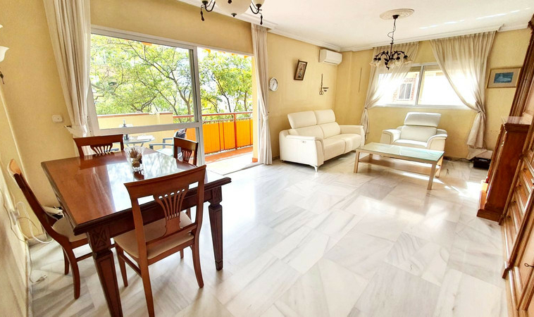 Fantástico gran piso en esquina en venta en Fuengirola con excelentes calidades. Cuenta con un precioso y luminoso salón-comedor con muebles de madera y acceso a una soleada terraza frente a un parque. La cocina está totalmente equipada, de madera, con lavadero y zona de desayuno. El apartamento ofrece 3 dormitorios y 2 baños, uno de ellos en suite con ventana, en el dormitorio principal, que es amplio y cuenta con amplios armarios. La propiedad se encuentra en un edificio con ascensor, con acceso para sillas de ruedas y cerca de todos los servicios. El precio incluye una plaza de aparcamiento y un amplio trastero con ventilación natural. Se aceptan ofertas.