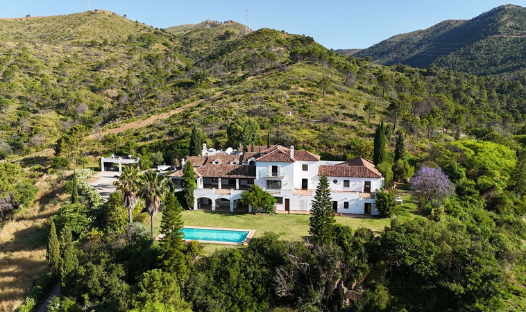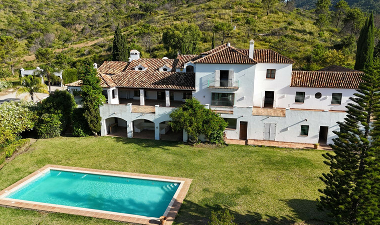 Finca – Cortijo única con 550.000 m2 de terreno y río, a solo 8 minutos en coche de la A-7, entre Estepona y San Pedro. Esta propiedad se encuentra en una zona rústica protegida, lo que garantiza tranquilidad, privacidad y estar totalmente rodeada de bosques y montañas, pero a solo unos 15 minutos en coche de la playa, "Laguna Village", etc.