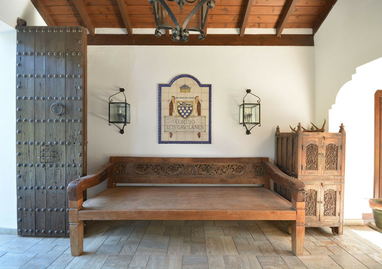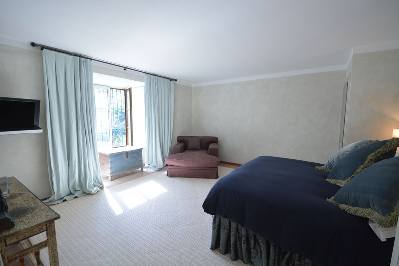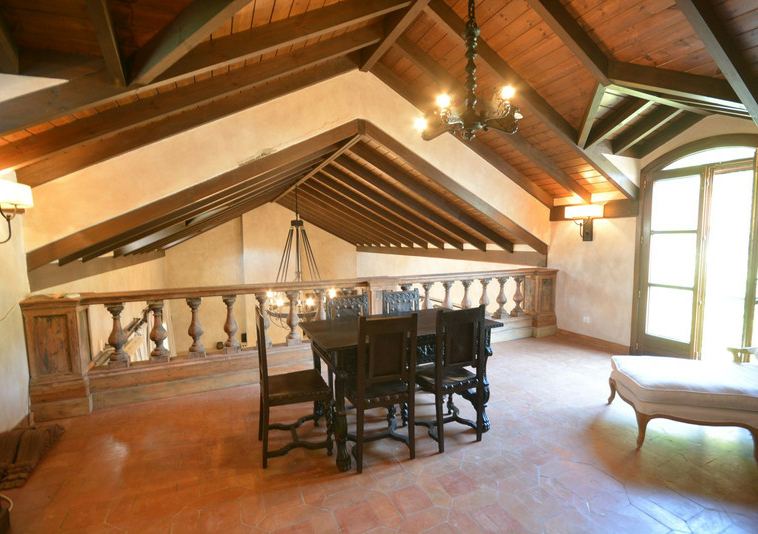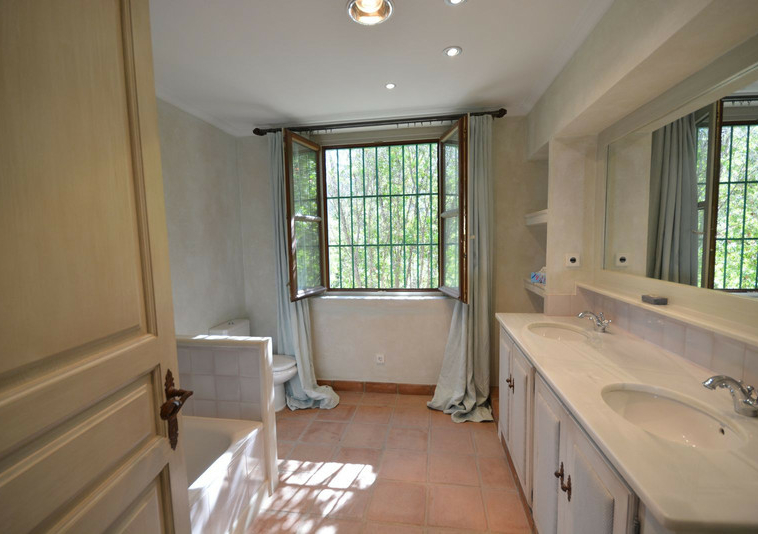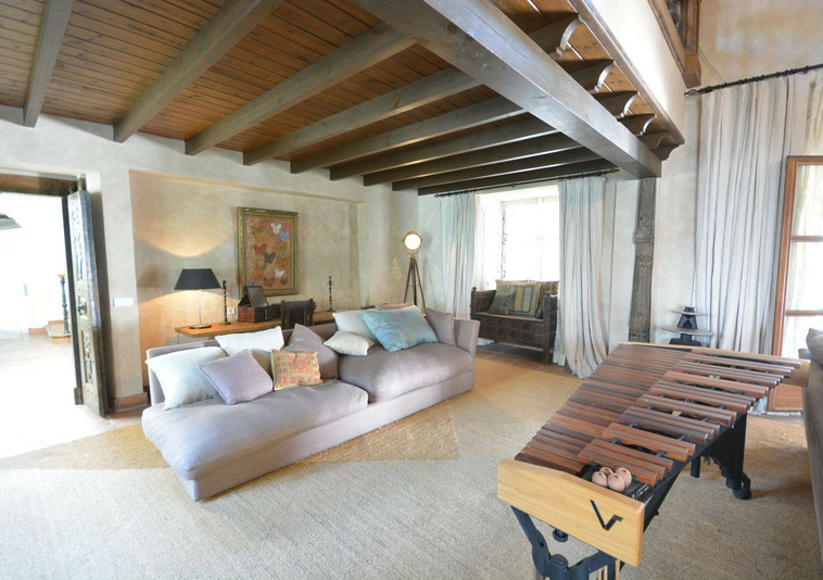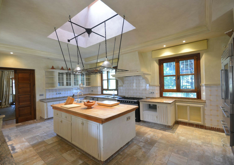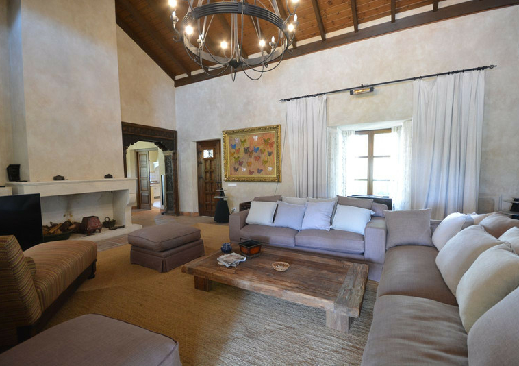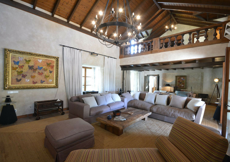 La distribución actual tiene, en la planta baja: patios ajardinados de entrada con fuentes de agua y antiguos olivos, vestíbulo de entrada con techos muy altos, vigas de madera y una majestuosa escalera que conduce a una hermosa suite principal, vestidor y baño, además de una zona de estar con vistas al amplio salón. También hay una sala de cine muy espaciosa, un gran comedor con chimenea y una gran cocina al lado. Al otro lado del vestíbulo hay otras tres suites con habitaciones dobles. Toda esta área da acceso a una gran terraza cubierta y abierta que da al jardín, la piscina y el bosque. Aquí es donde está la barbacoa y el comedor al aire libre.