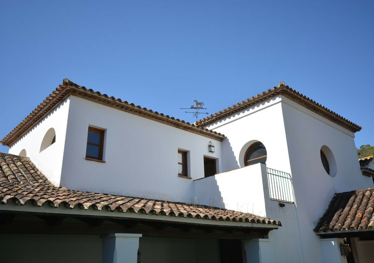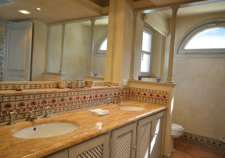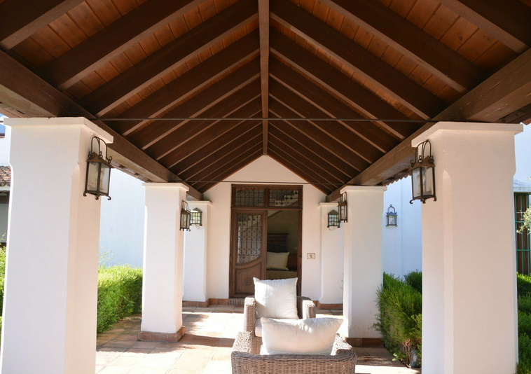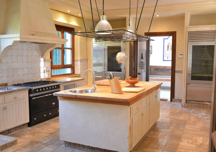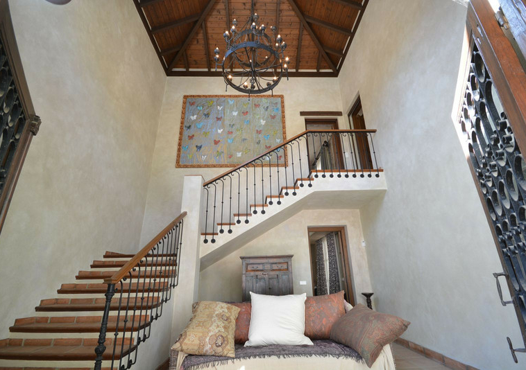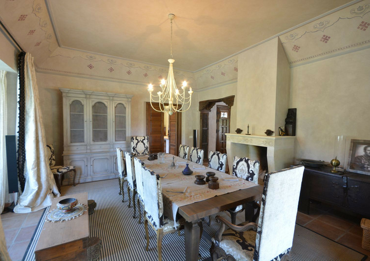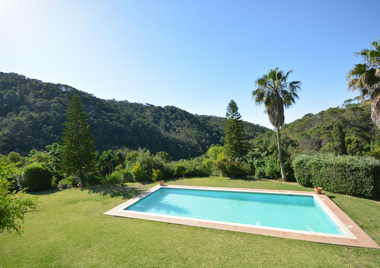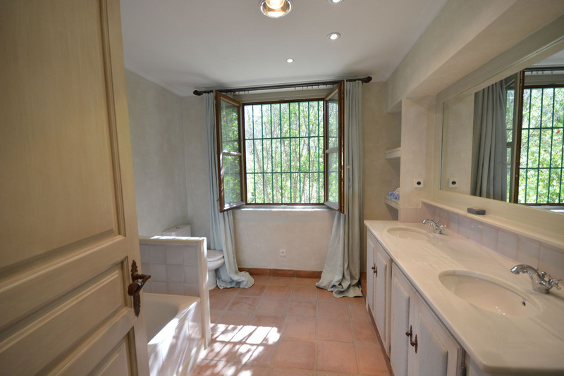 La distribución actual tiene, en la planta baja: patios ajardinados de entrada con fuentes de agua y antiguos olivos, vestíbulo de entrada con techos muy altos, vigas de madera y una majestuosa escalera que conduce a una hermosa suite principal, vestidor y baño, además de una zona de estar con vistas al amplio salón. También hay una sala de cine muy espaciosa, un gran comedor con chimenea y una gran cocina al lado. Al otro lado del vestíbulo hay otras tres suites con habitaciones dobles. Toda esta área da acceso a una gran terraza cubierta y abierta que da al jardín, la piscina y el bosque. Aquí es donde está la barbacoa y el comedor al aire libre.