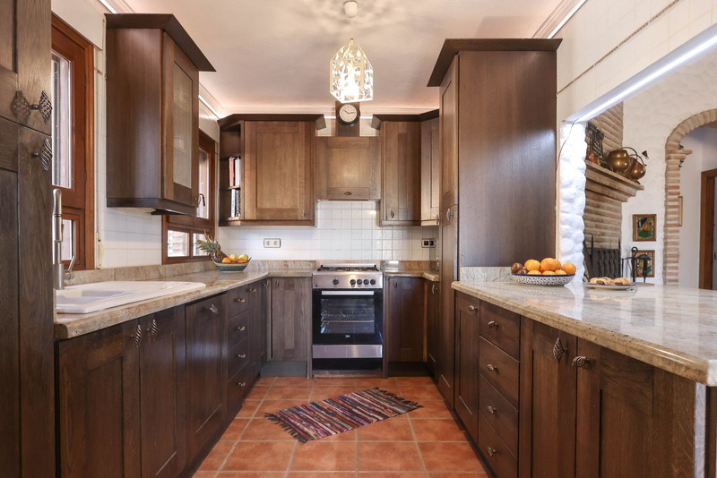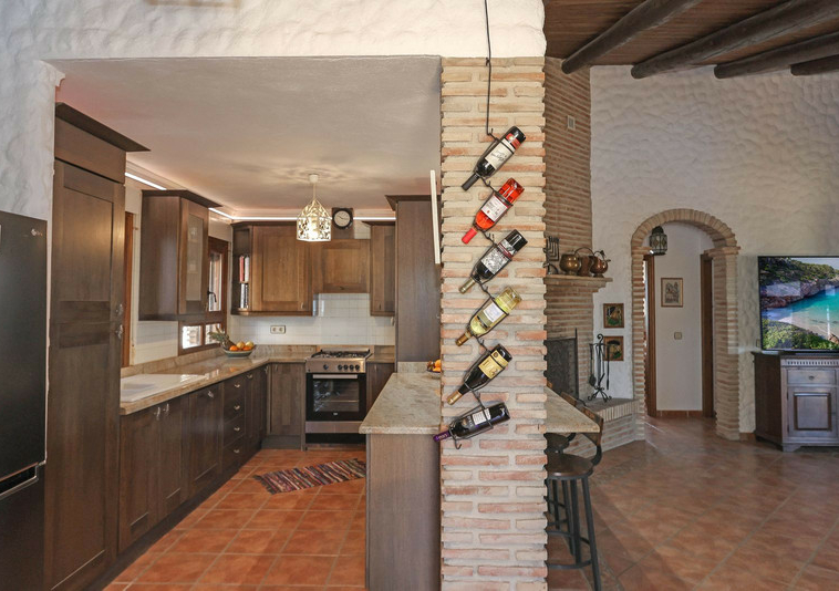 La propiedad ha sido construida en un estilo rústico con techos altos abovedados con vigas tanto en el salón como en la cocina. La propiedad ha sido diseñada para disfrutar de un estilo de vida de planta abierta con el flujo de propiedad también gravitando hacia los patios exteriores y el área de la piscina. ¡Las puertas del patio se abren desde el salón al invernadero construido para disfrutar de esas vistas!