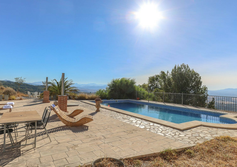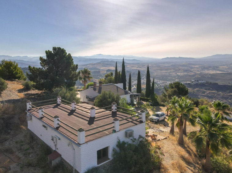Finca de estilo rústico situada en posición elevada con vistas panorámicas del valle.