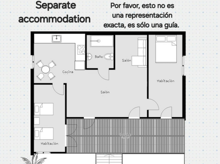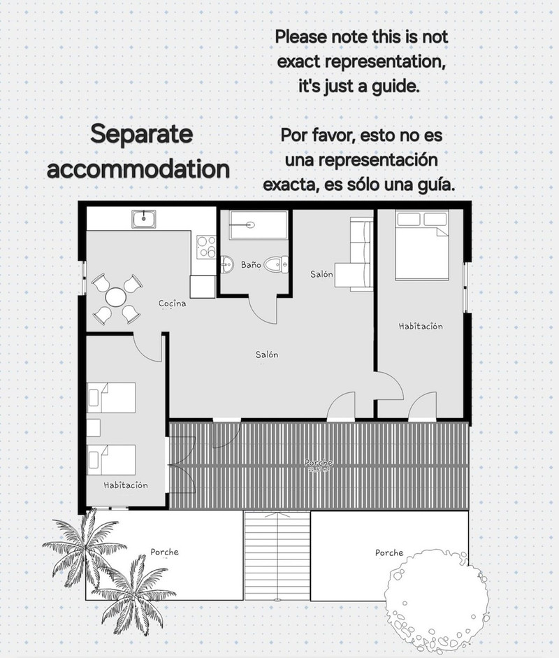 La casita está ubicada al costado de la propiedad en una posición elevada. La casita fue reformada recientemente con 2 dormitorios, cocina, salón y baño.