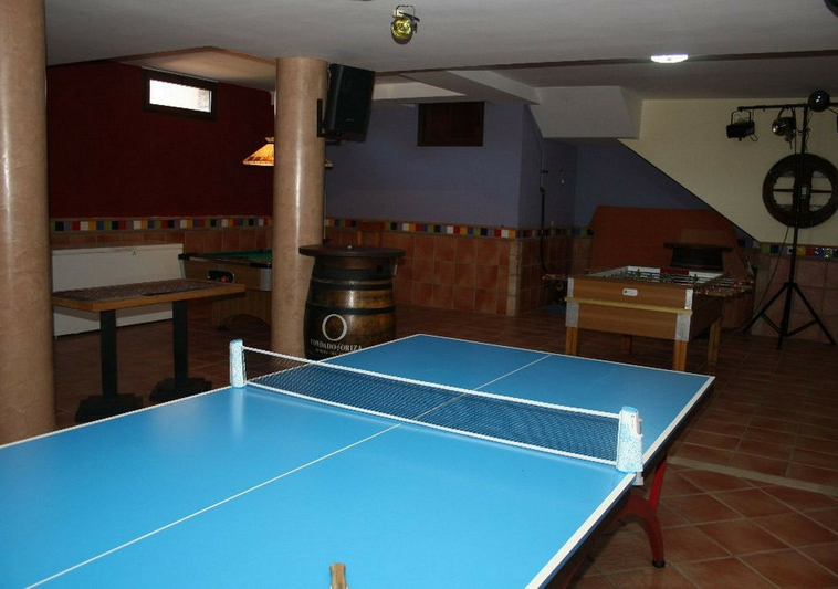 Segunda Planta Cuatro habitaciones dobles, todas con balcón o mirador. Baño completo con ducha y bañera. Planta Baja Cocina completa para mayor comodidad en eventos o celebraciones. Discoteca privada con barra americana y equipo de sonido. Sala de estar y juegos equipada con futbolín, billar, mesa de ping-pong, dardos, sofás, sofás cama, mesas, TV y DVD