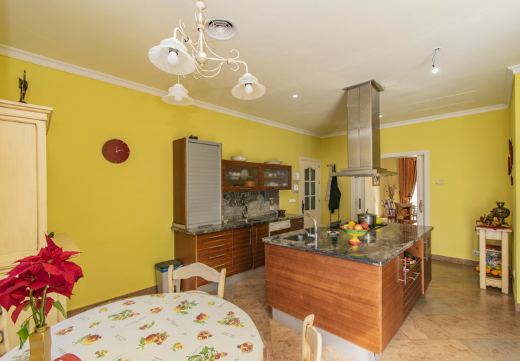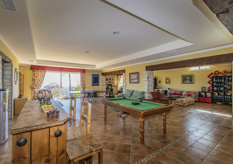 La propiedad está distribuida en varias plantas y cuenta con un total de seis dormitorios, cuatro cuartos de baño gran salón con cocina independiente, sala de juegos, garaje, terrazas y solárium.