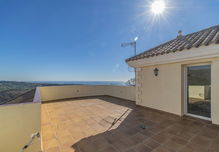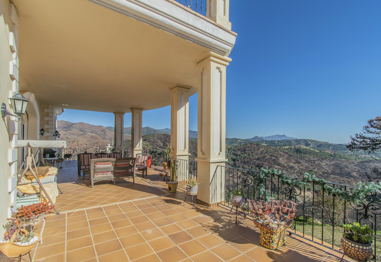 Gran villa independiente con preciosas vistas al mar y la montaña ubicada en un entorno natural a unos minutos en coche de Estepona.