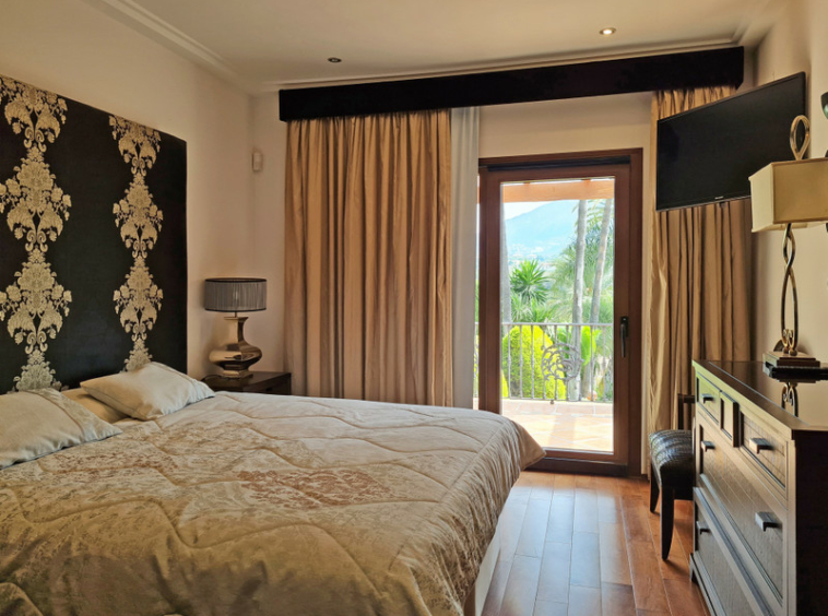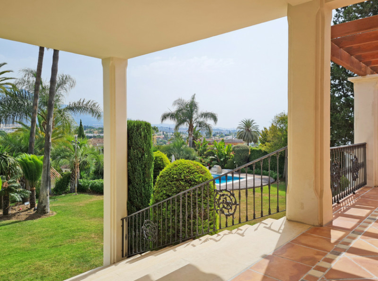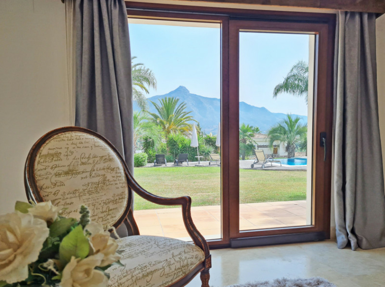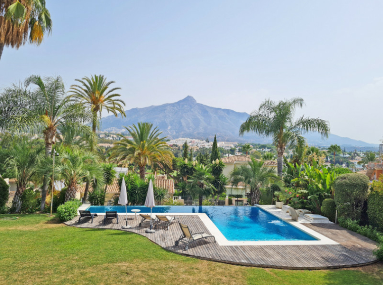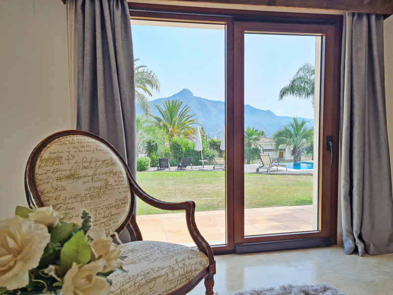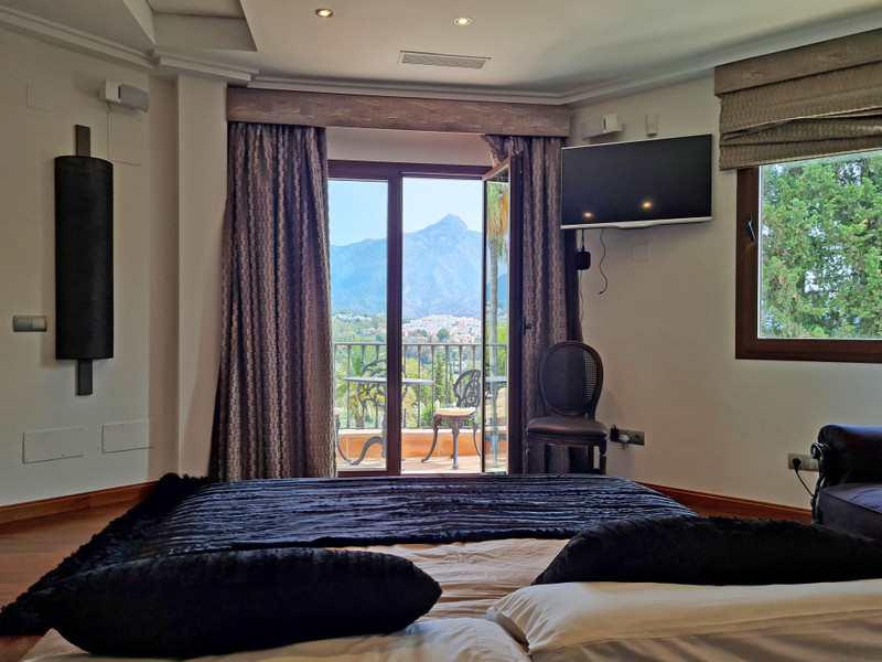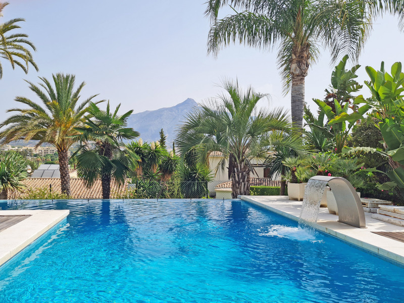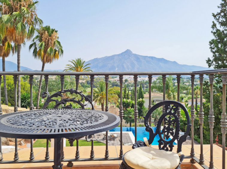 Hermosa propiedad en venta en Nueva Andalucia. Construida con un estándar muy alto, esta impresionante propiedad ofrece impresionantes vistas sobre el valle del golf hacia la montaña de la Concha.