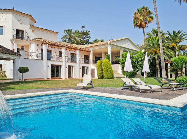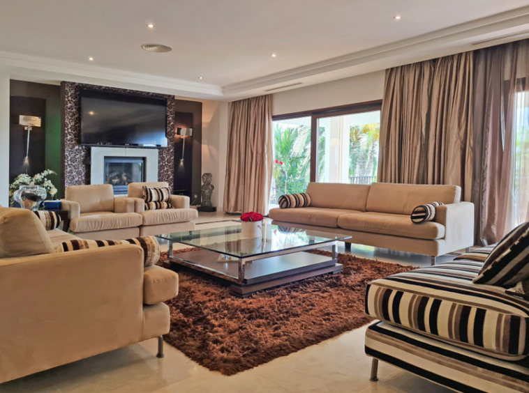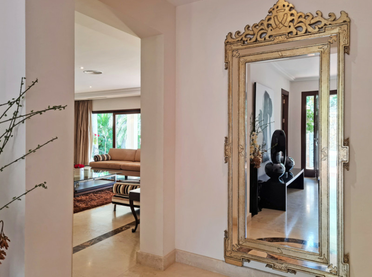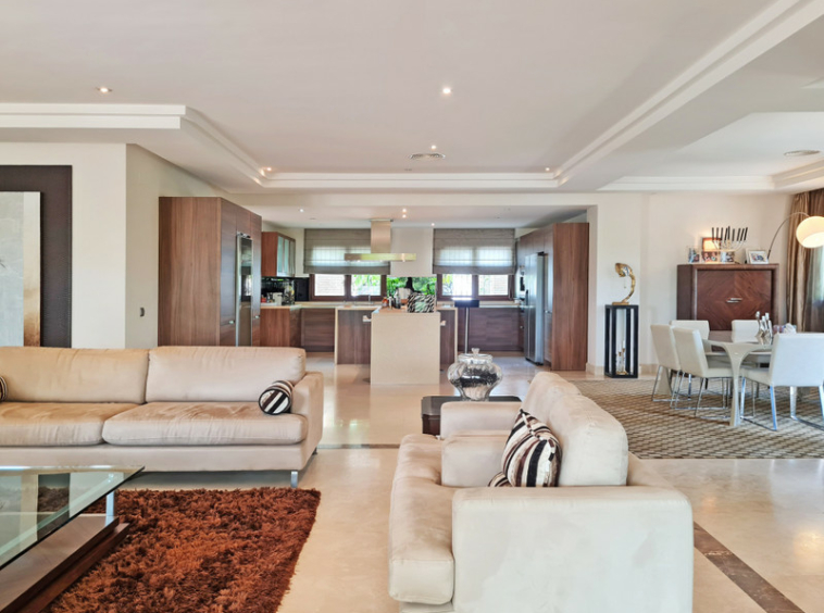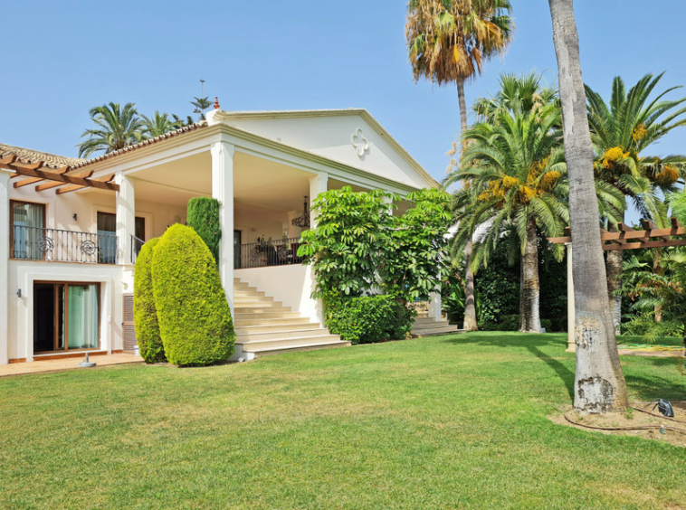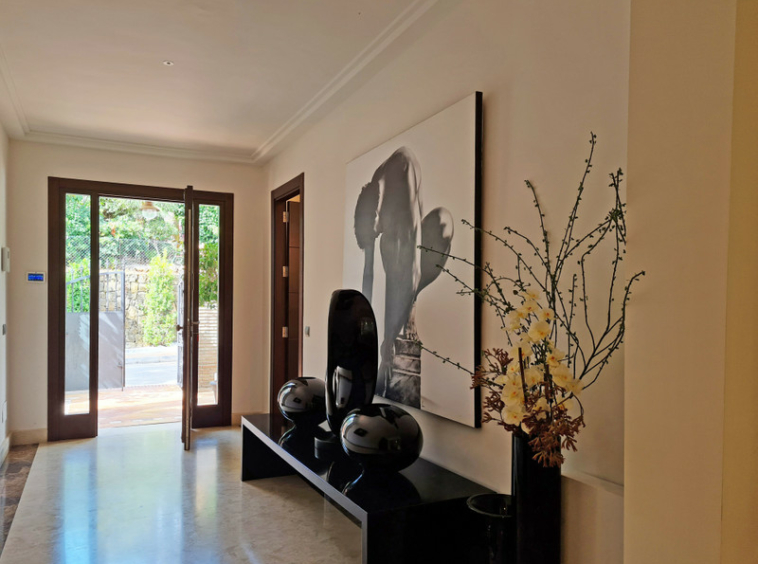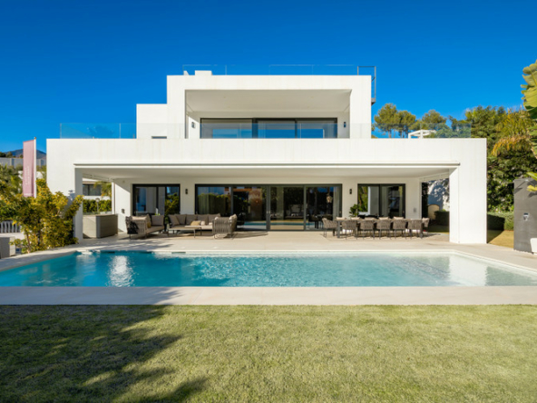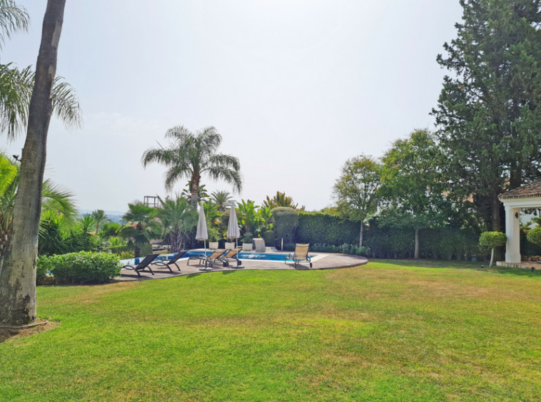 Hermosa propiedad en venta en Nueva Andalucia. Construida con un estándar muy alto, esta impresionante propiedad ofrece impresionantes vistas sobre el valle del golf hacia la montaña de la Concha.
