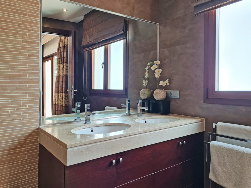 La propiedad tiene 680m2 construidos en 3 niveles y se asienta sobre una parcela de 1.700m2. Un hall de entrada conduce directamente a una amplia sala de estar con fantásticas vistas al jardín y a la montaña, que conduce a un comedor y una gran cocina de planta abierta. Todas estas habitaciones conducen directamente a la terraza principal con espacio para cenar y descansar al aire libre. También en este nivel hay 3 dormitorios dobles con baños en suite y vestidores privados.