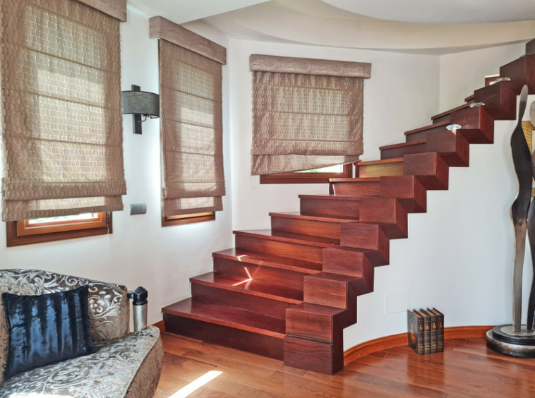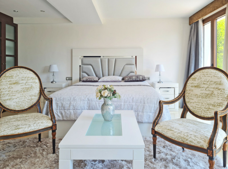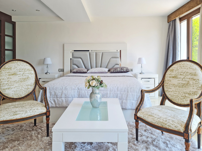 La planta superior cuenta con el dormitorio principal con baño en suite y vestidor. En la planta baja, hay 2 dormitorios más y una zona de entretenimiento con home-cinema. En el jardín, hay una hermosa piscina con cascada, un deck para descansar y un amplio espacio con total privacidad de los vecinos.