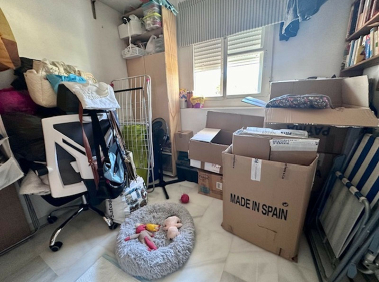 El tercer dormitorio es un pelin mas pequeño, con ventana, muy luminoso y que actualmente se usa como zona de almacenaje. Ideal para un dormitorio infantil o de estudiante.