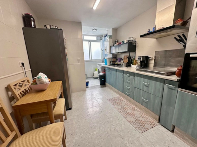 Hall de entrada con cocina a mano derecha. Amplia, con zona de lavandería, la cual ha sido implementada a la cocina, con zona de comedor en la misma. ( Pudiendo tener la opción de tirar la pared, y hacerla cocina en concepto abierto, implementandola al salón).