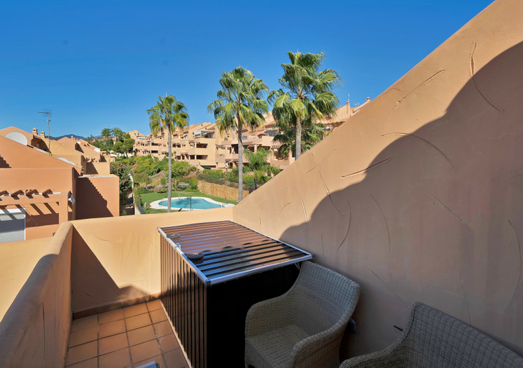 Este espectacular apartamento ático dúplex de reciente renovación y mejoras, situado en la segunda planta en esquina, con orientación sur oeste, tiene unas impresionantes vistas panorámicas al mar, la montaña, Gibraltar, el campo de golf y todo el entorno. Además estas vistas nunca podrán bloquearse, debido a su altura.