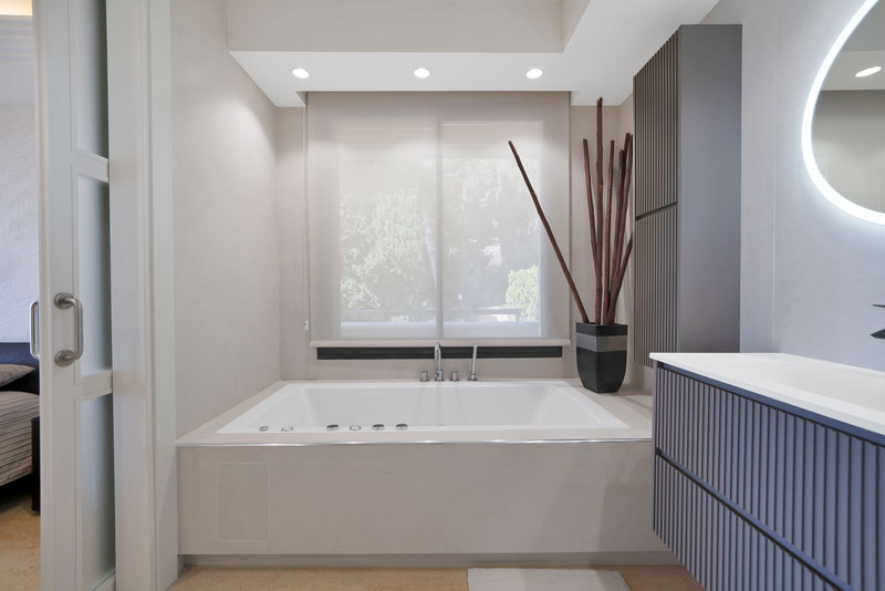 En el interior, un amplio y luminoso salón-comedor con cocina abierta crea una distribución moderna y acogedora. Los ventanales de suelo a techo inundan el interior de luz natural y proporcionan acceso directo a la terraza desde el salón y la habitación principal.